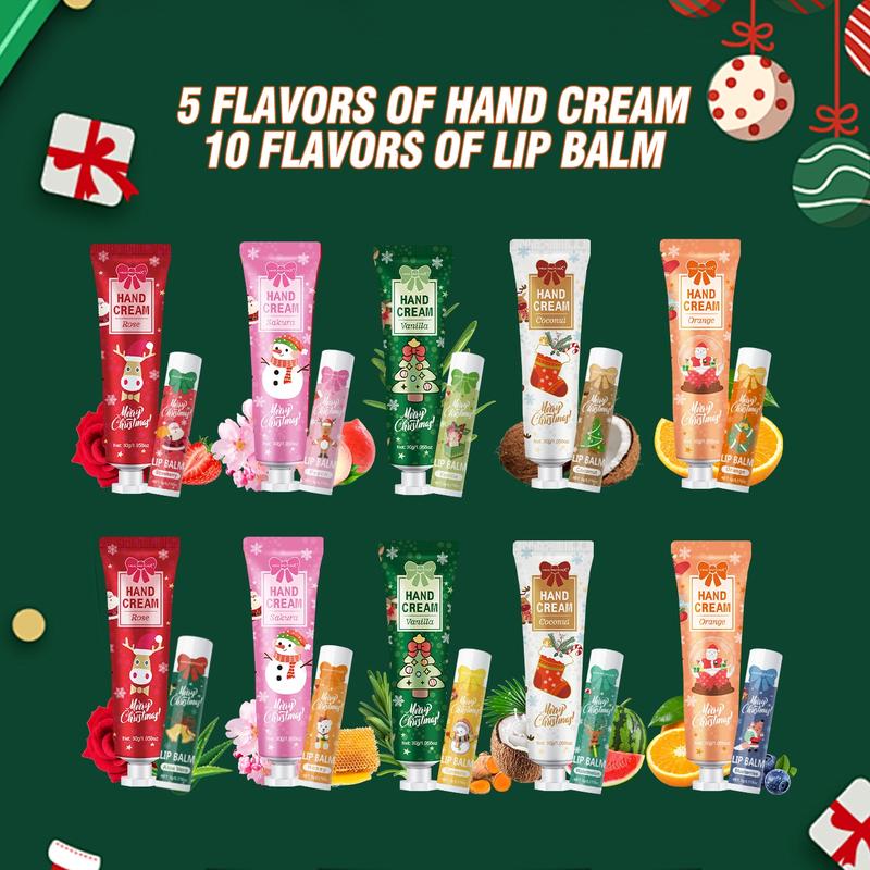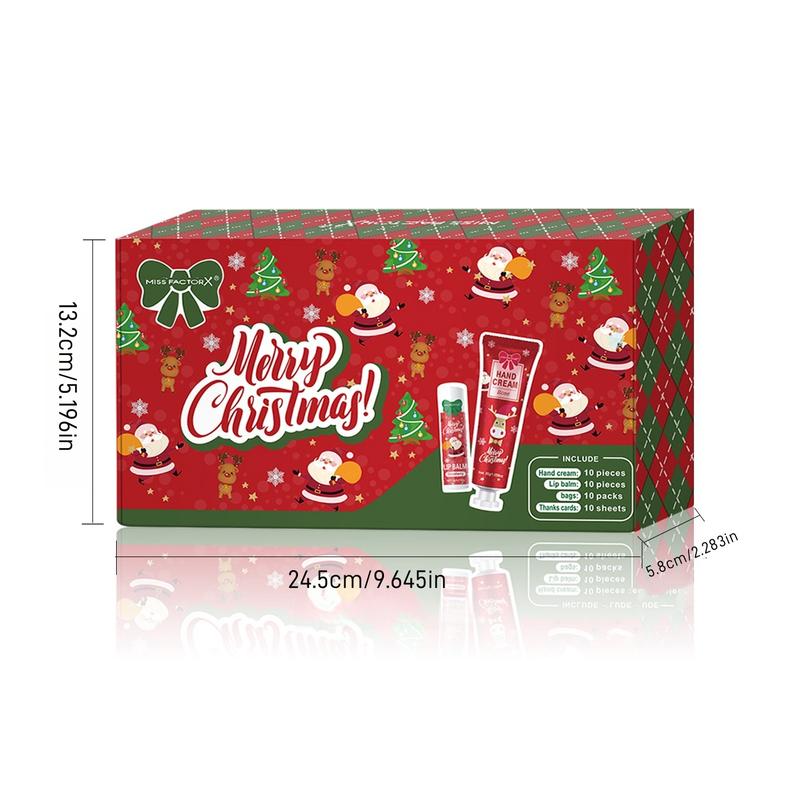 Christmas Gift Set, Beautiful Gift Box, Hand Cream & Lip Balm Kit with Santa Card & Bag, Party Favors, Women's Christmas Present, 10 Sets Per Box