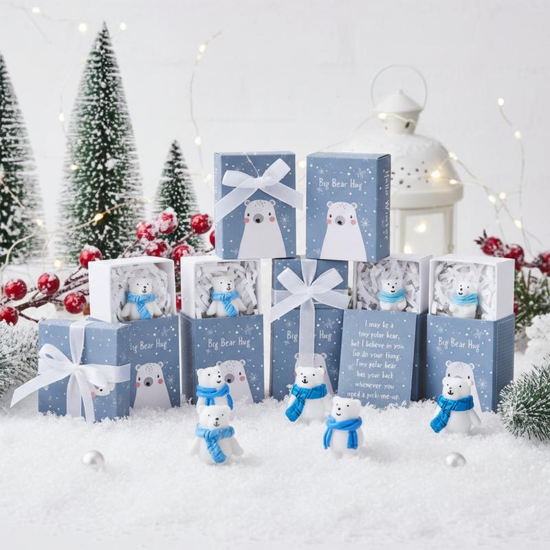 ·12-Piece Set: 12 mini polar bear figurines, 12 gift boxes.