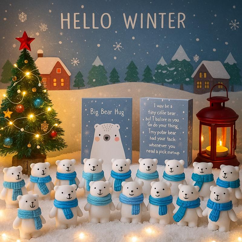 Warm Season's Greetings! Each set includes mini polar bear figurines with 6 scarf styles, bear-themed gift boxes, and natural raffia decoration. Perfect for colleagues, teachers, parents, or friends. 🐻