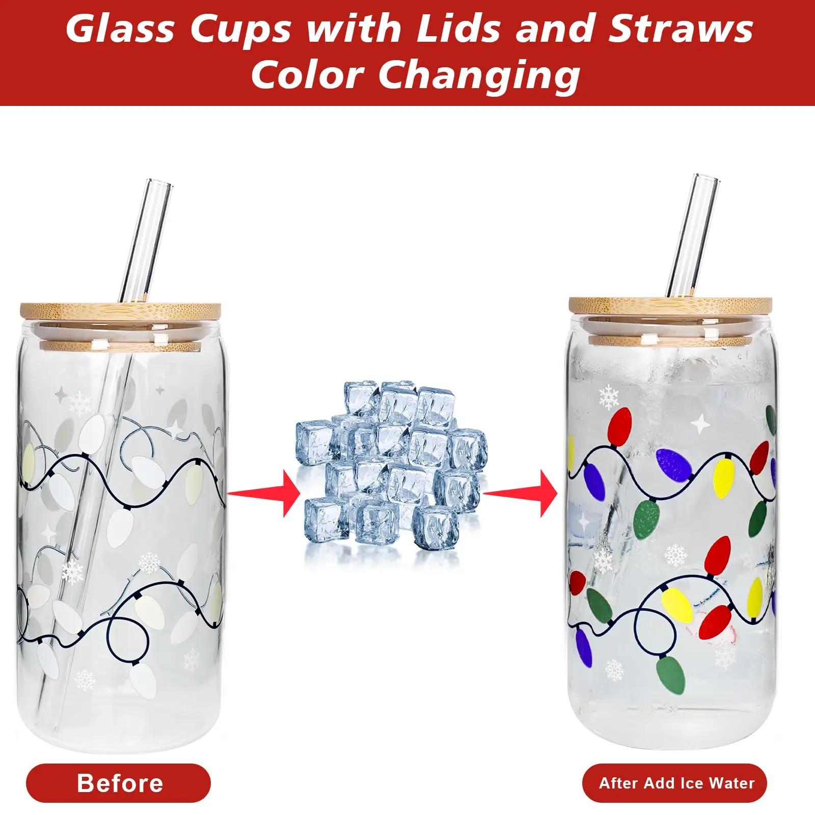 Christmas Glass Cups 17oz Iced Coffee Cups with Lids with Color Changing and Straws Drinking Glasses Cups Decor Glass Water Bottles Gift for Women Kids Men Cute Drinking Can Jar, Floral Tumbler, Beer Can Gifts
