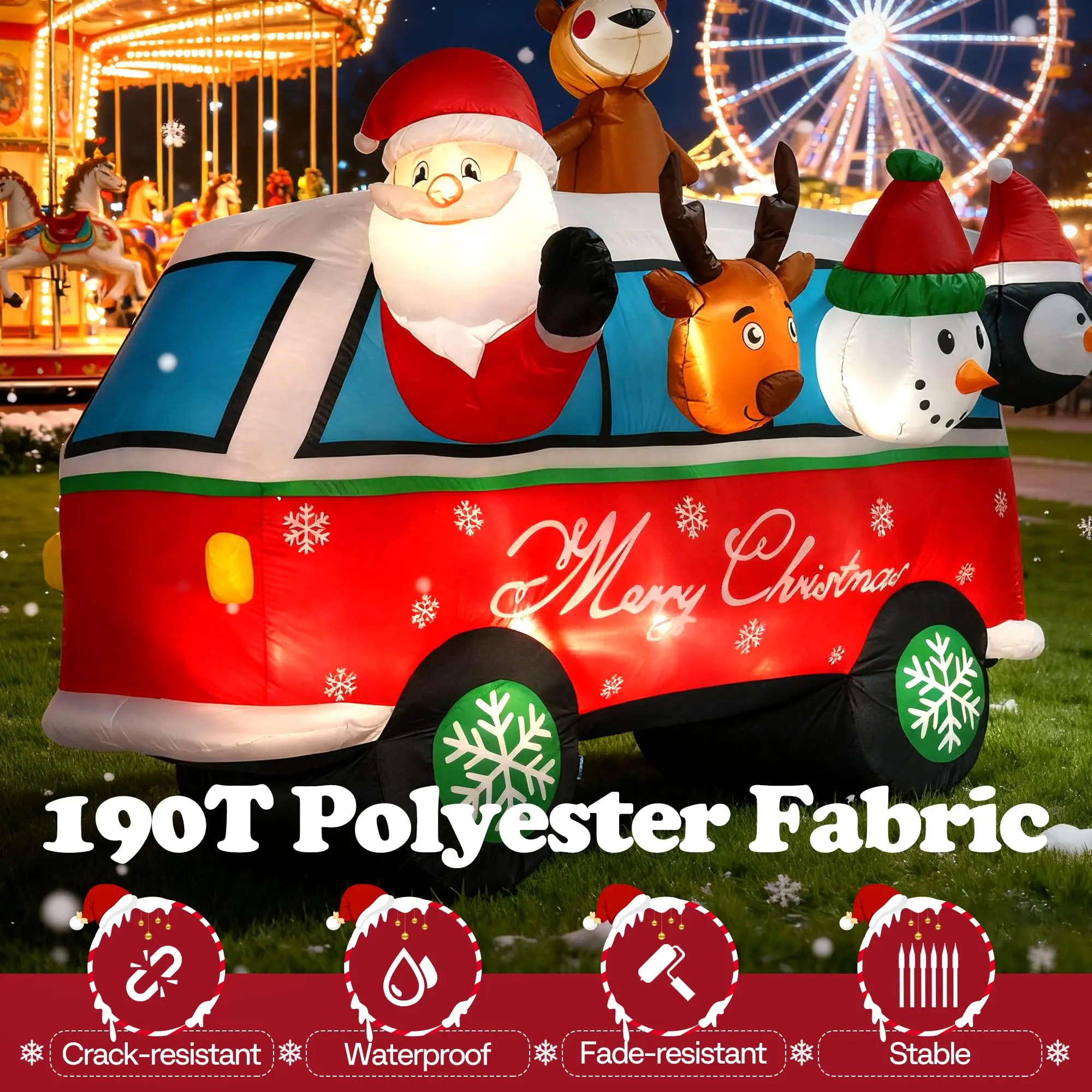 ·DURABLE AND STABLE: This inflatable decoration is made from polyester fabric, which is waterproof and durable to prevent rips and tears; With excellent stitching, it's built to last through multiple Christmas seasons and bring joy to you and your family; Simply wipe it clean with a damp cloth for easy maintenance