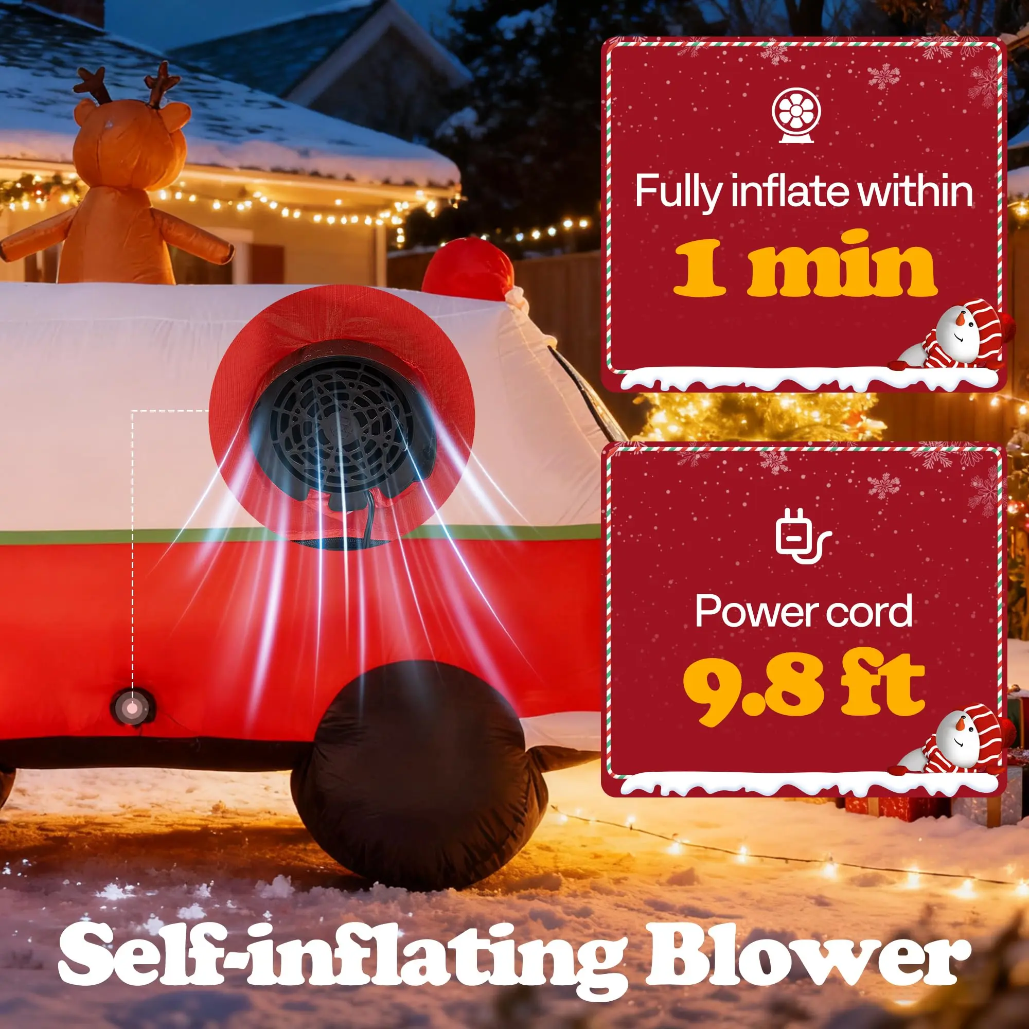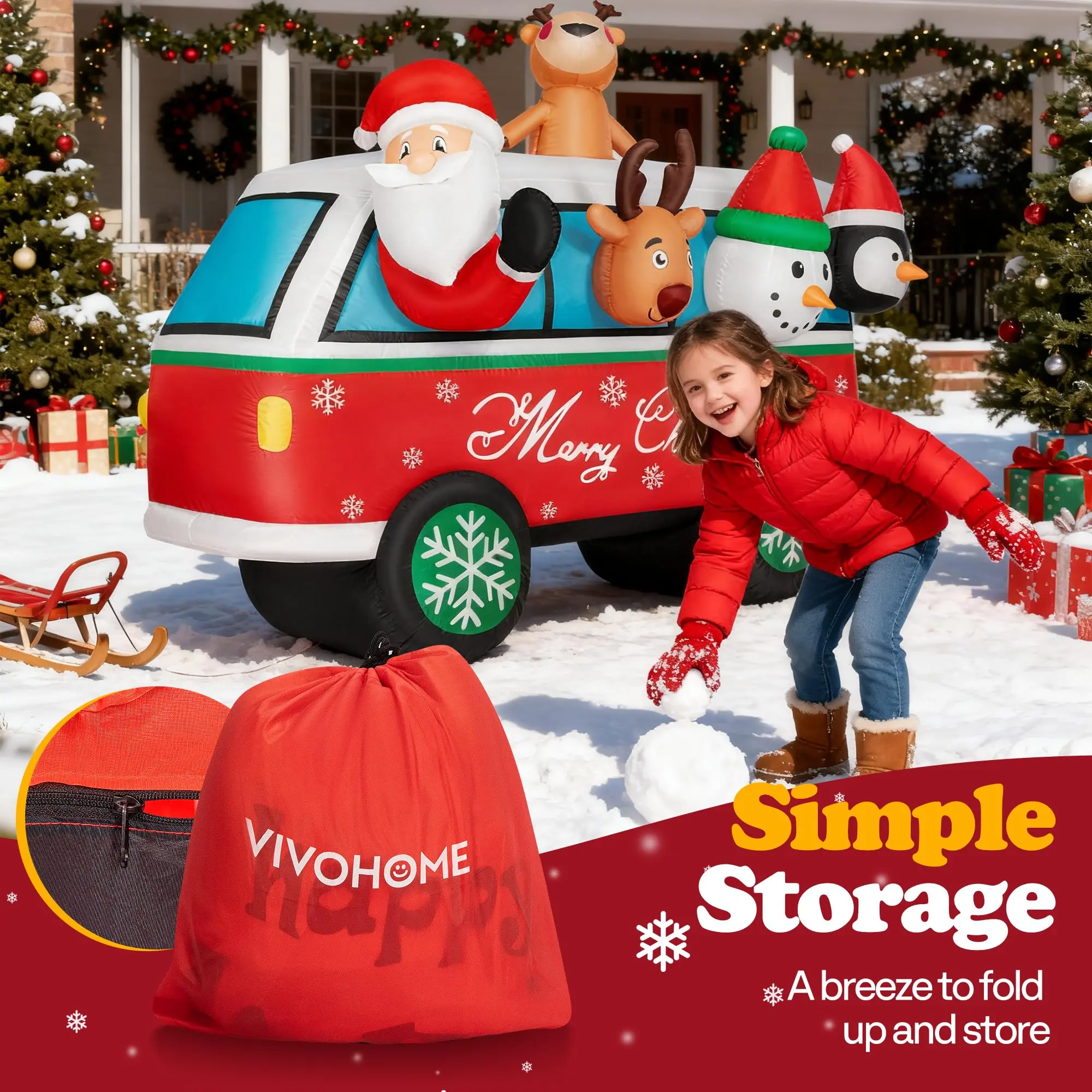 ·SIMPLE TO STORE: Once you open the zipper, this blow-up decoration deflates on its own; It can be folded into a compact size; Comes with a storage bag for easy storage after the event; After you pack up your Christmas decor, your kids might already be looking forward to next year's celebration