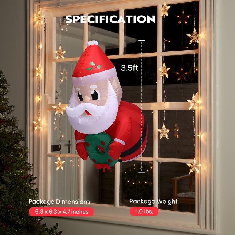 ·EYECATCHING APPEARANCE: This 31-in Christmas inflatable decoration features bright LED lights, making it a popular attraction to your friends, family, and neighborhood; The inflatable Santa Claus, complete with an adjustable belt, enables children to bring the Christmas cheer to life to the fullest; With loops, rope, and a suction cup, it can be hang on the wall for decoration; With a sheet of stickers for DIY, come to enjoy designing this Santa Claus together with kids