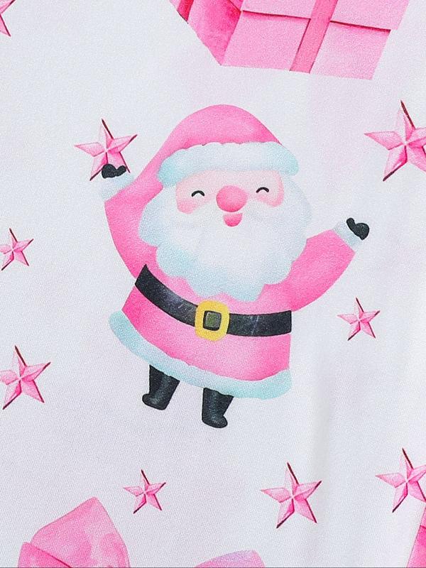 Christmas Limited Edition Pink Santa Claus Pattern Children's Skin-Friendly Sleepwear Two-Piece Set, Flameardant Fabric Comfortable Autumn and Winter Thin Collar Shirt Long Sleeve Pants Set, Sweet Pink Print with Christmas Santa Cl, Pajamas Christmas