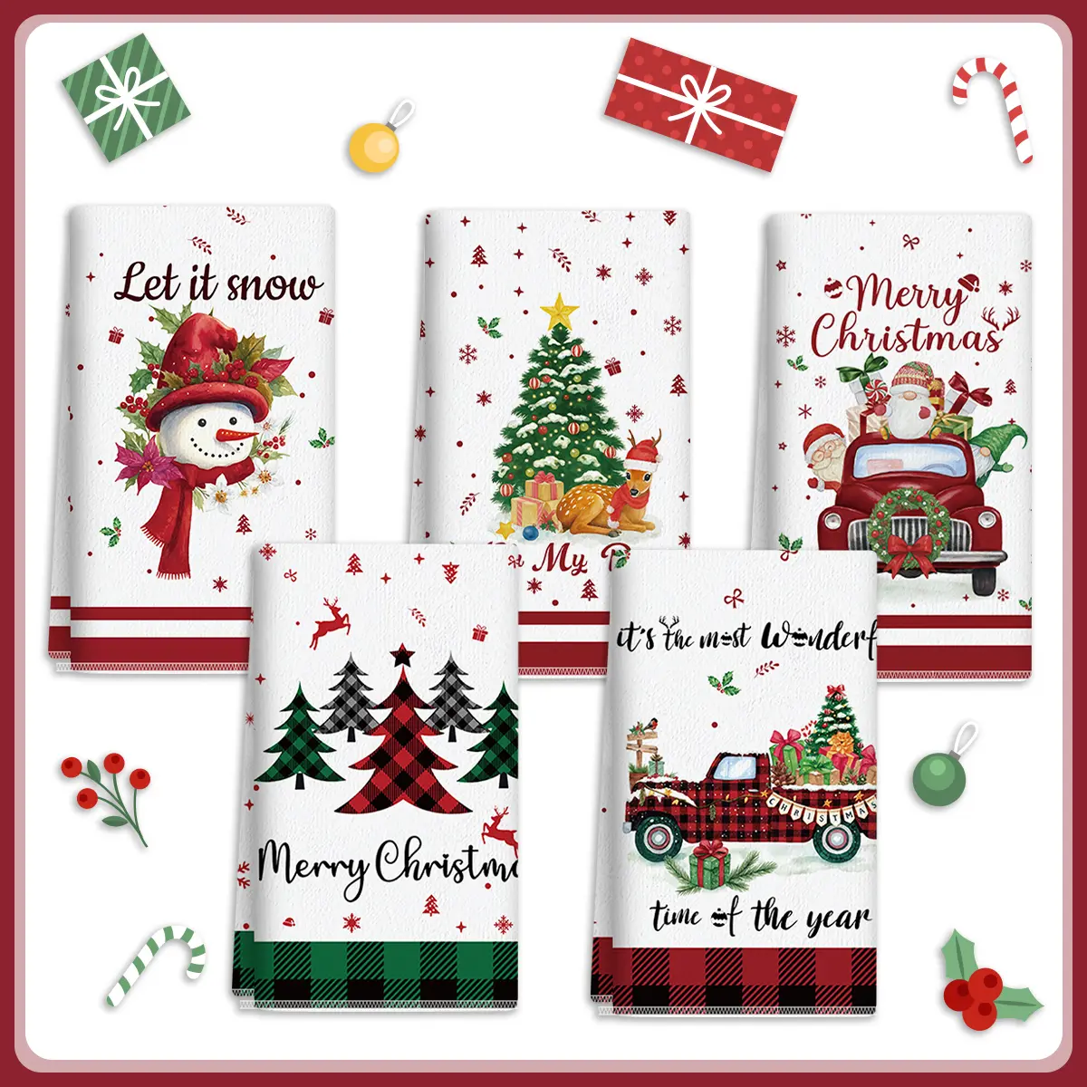• Kitchen Towel Set: Get 5 pieces of Christmas kitchen towels with unique designs. Perfect for daily cleaning in the kitchen, bathroom, or bar. The variety meets your replacement needs effectively. 🧼