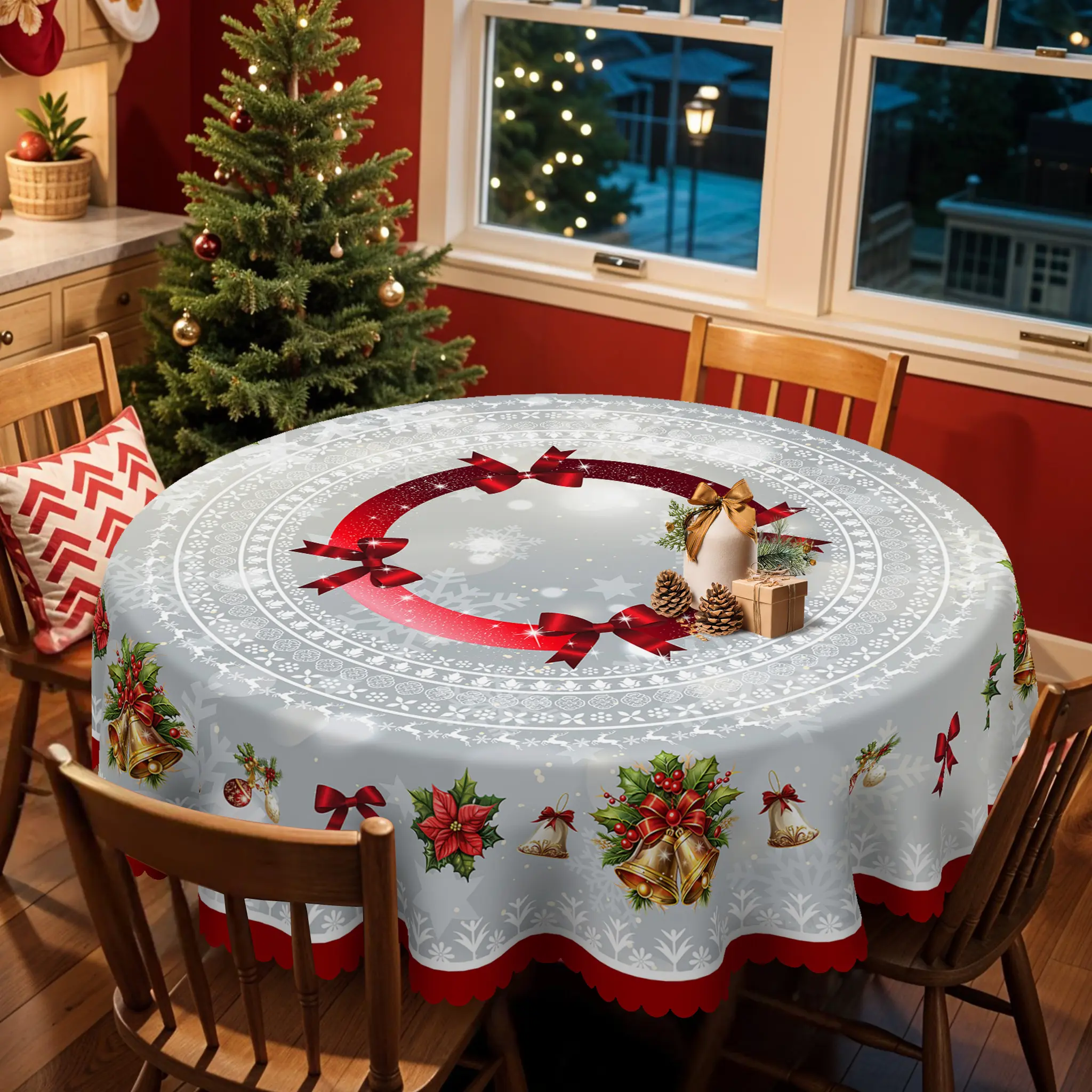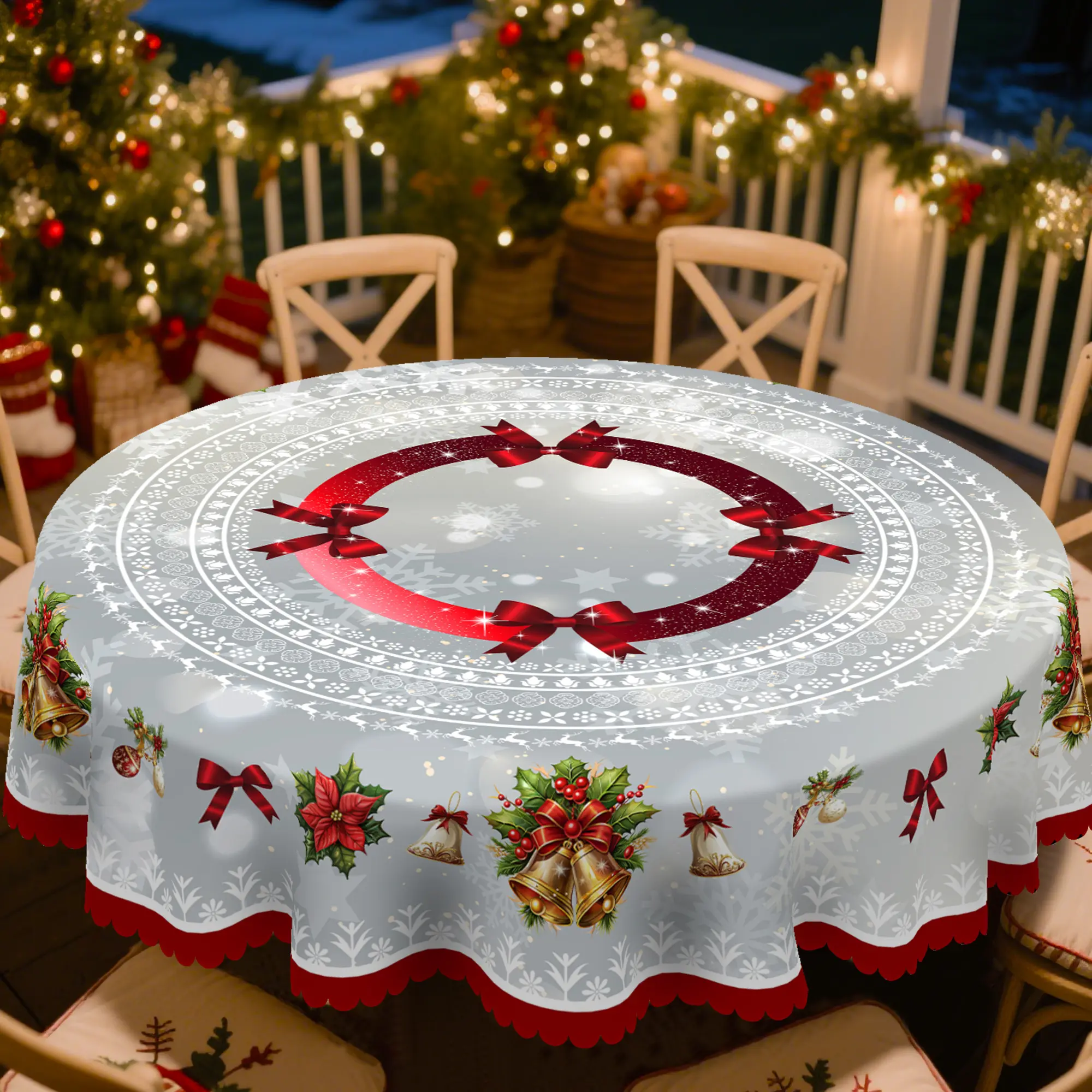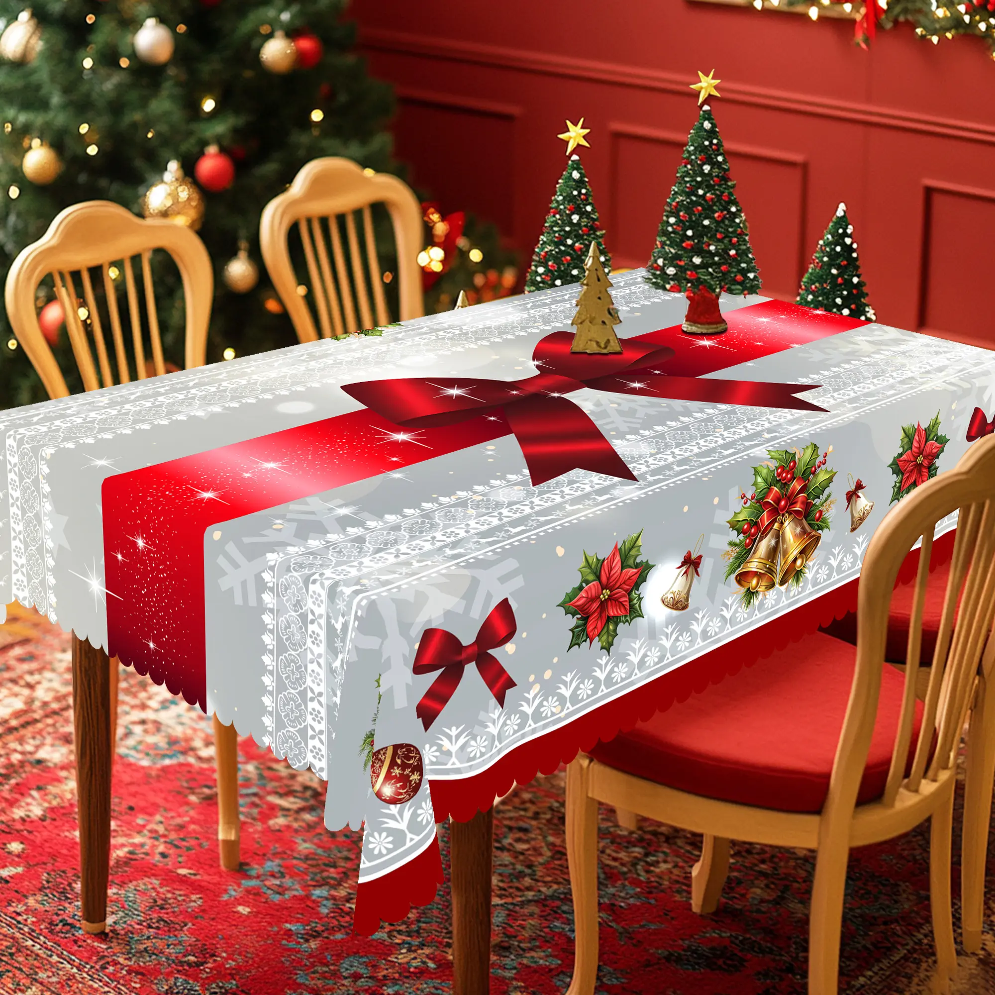 Christmas Themed Print Tablecloth - Rectangle Table Cover with New Year Christmas Snowflake, manteles de tela para fiesta, Xmas Decor, Holiday Party Indoor Dining Decor, Round Table Cloth, Christmas Party, Festive Home Kitchen Accessory Gift.