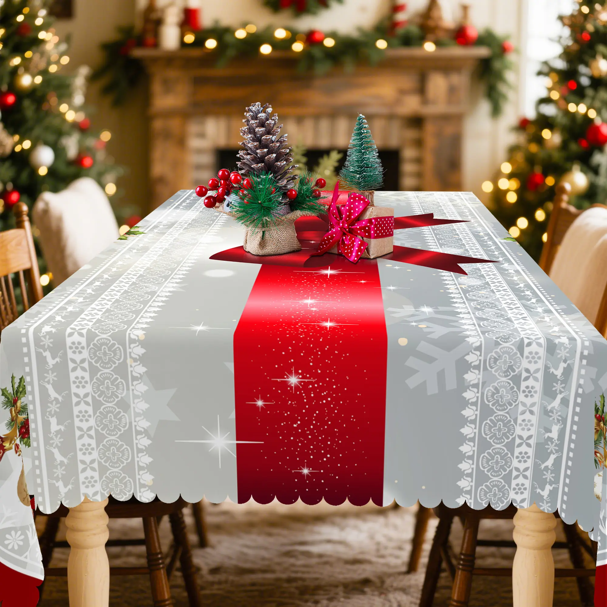 1pc, Christmas Themed Print Tablecloth - Rectangle Table Cover with New Year Christmas Snowflake, manteles de tela para fiesta, Xmas Decor, Holiday Party Indoor Dining Decor, Round Table Cloth, Christmas Party, Festive Home Kitchen Accessory Gift
