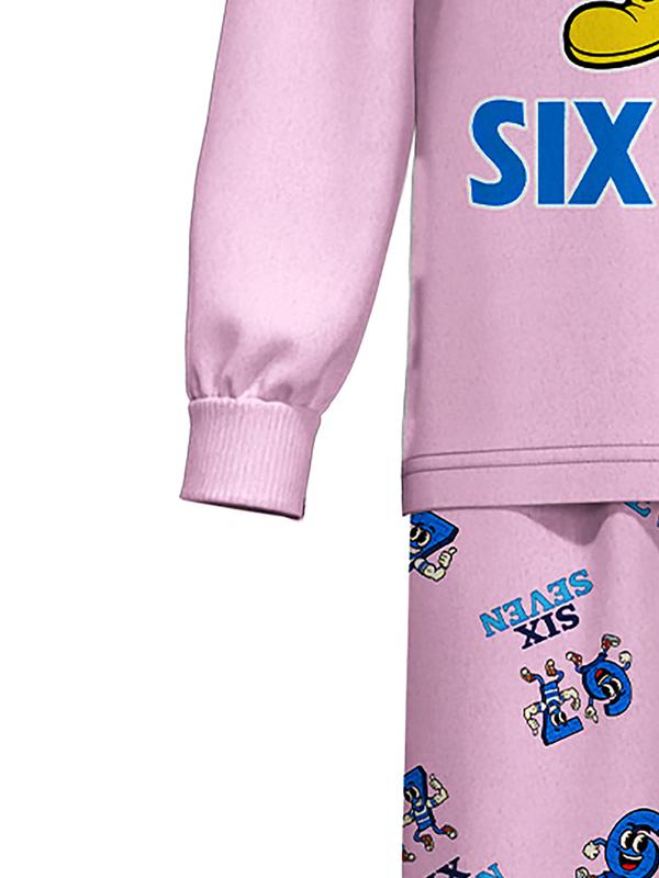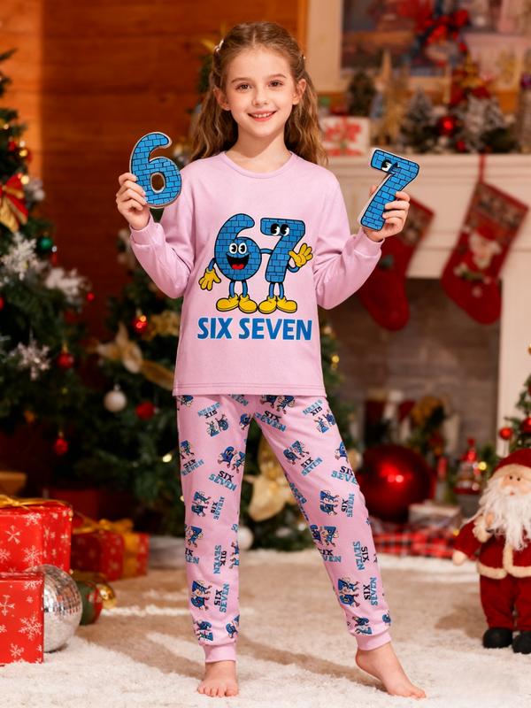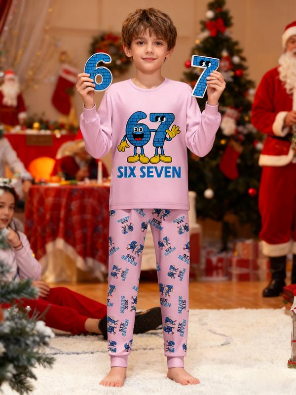 #67 Print Christmas Pajama Set Long Sleeve Pants for Kids and Youth, Six Seven Meme Pattern Homewear for Boys and Girls, Loose Fit, All Seasons, Holiday Christmas Gift Idea, Cartoon Print Pajama