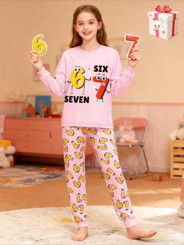 #67 Printed Long Sleeve Pants Pajama Set, Cute Cartoon Design for All Seasons, Perfect Gift for Reading Festival,Kids Valentine Pajamas,World Book Day Pajamas for Kids, Cute Storybook Style Sleepwear, School Event Outfit