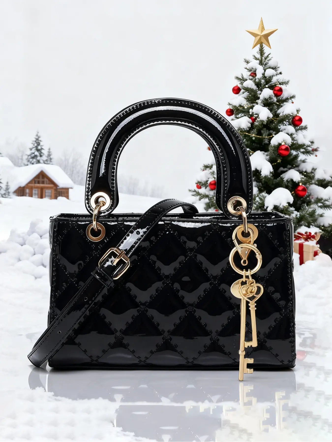 Christmas PU Leather Bag, Elegant Plaid Handbag for Women, Versatile Summer New Painted Leather Crossbody Bag, Fashion Shoulder Clutch, Casual Shoulder Bag