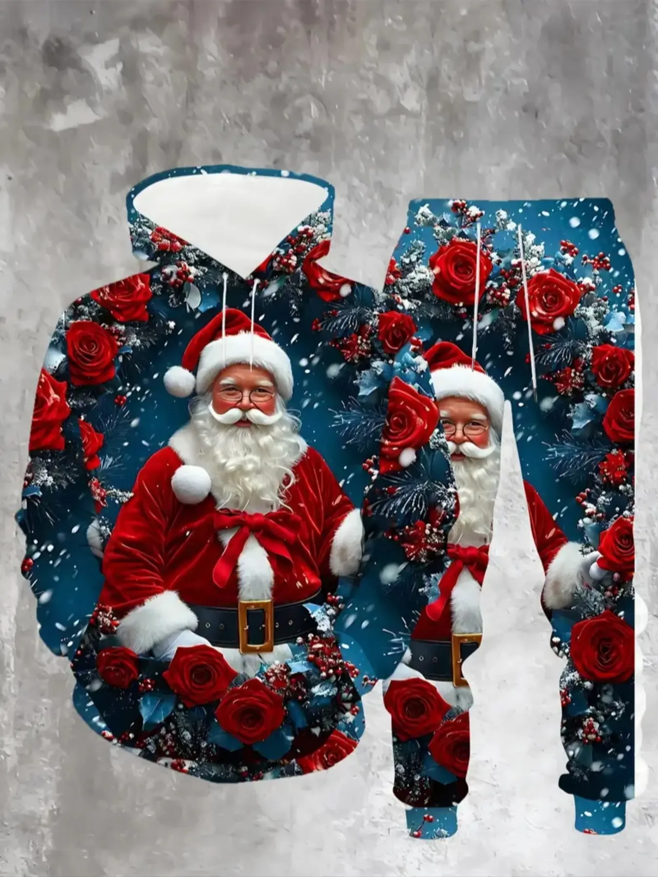 5. Christmas Santa Claus 3D Print Hoodie Set, Outfit, Rose Design, Fitted Long Sleeve, Comfortable Fit, Holiday, Fall & Winter