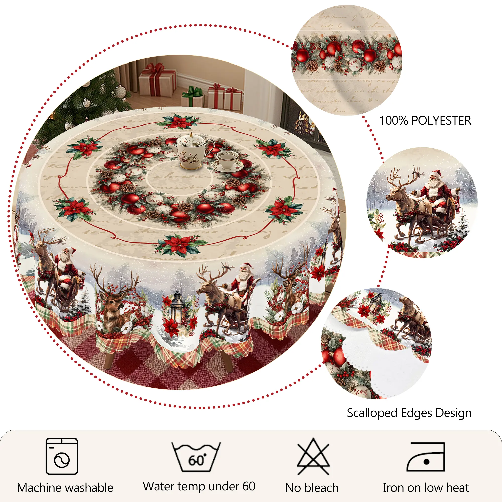 Round-60in: Tablecloth diameter 60 inches (152cm)