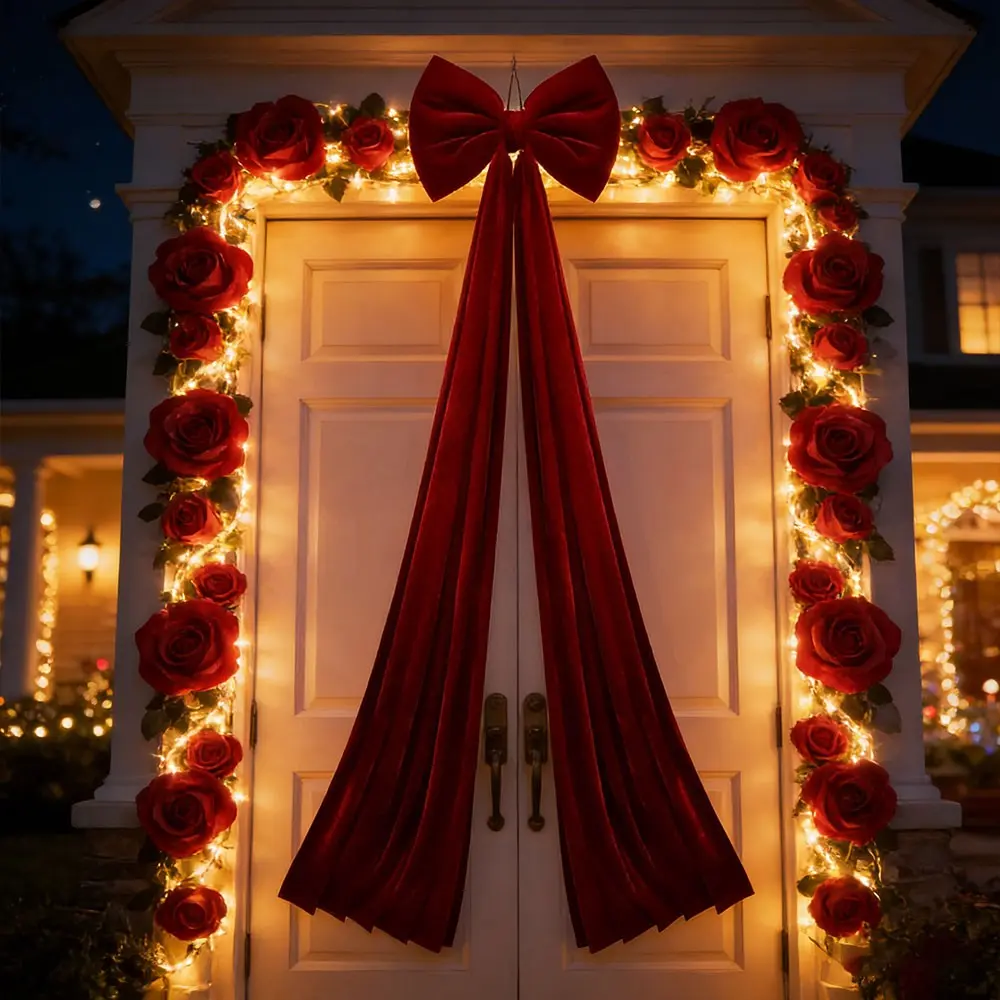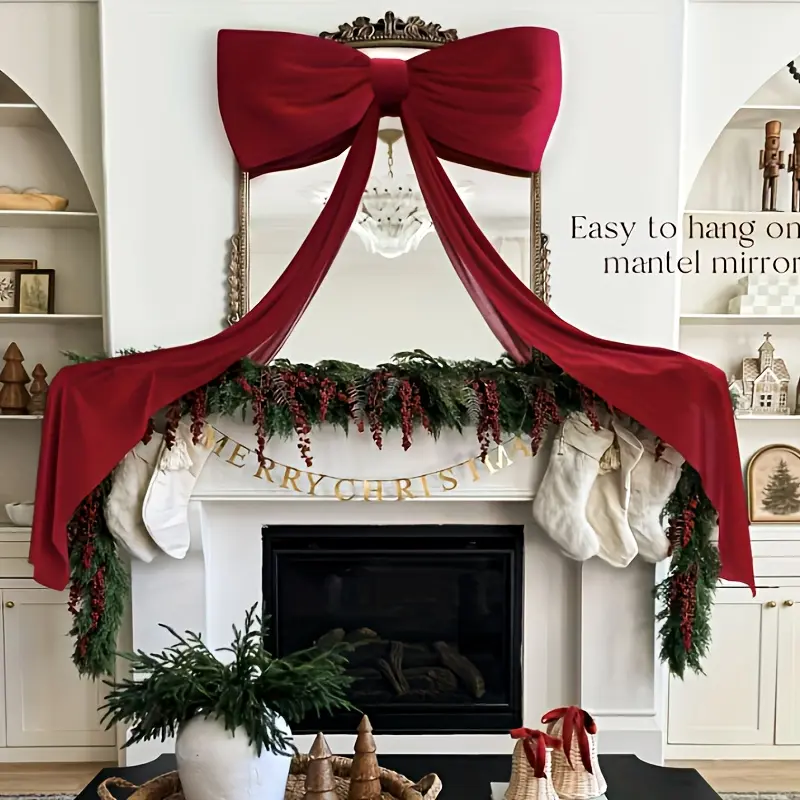 γVelvet Materialγ: Crafted from rich red velvet, this bow provides a luxurious texture, adding warmth to your holiday decorations.