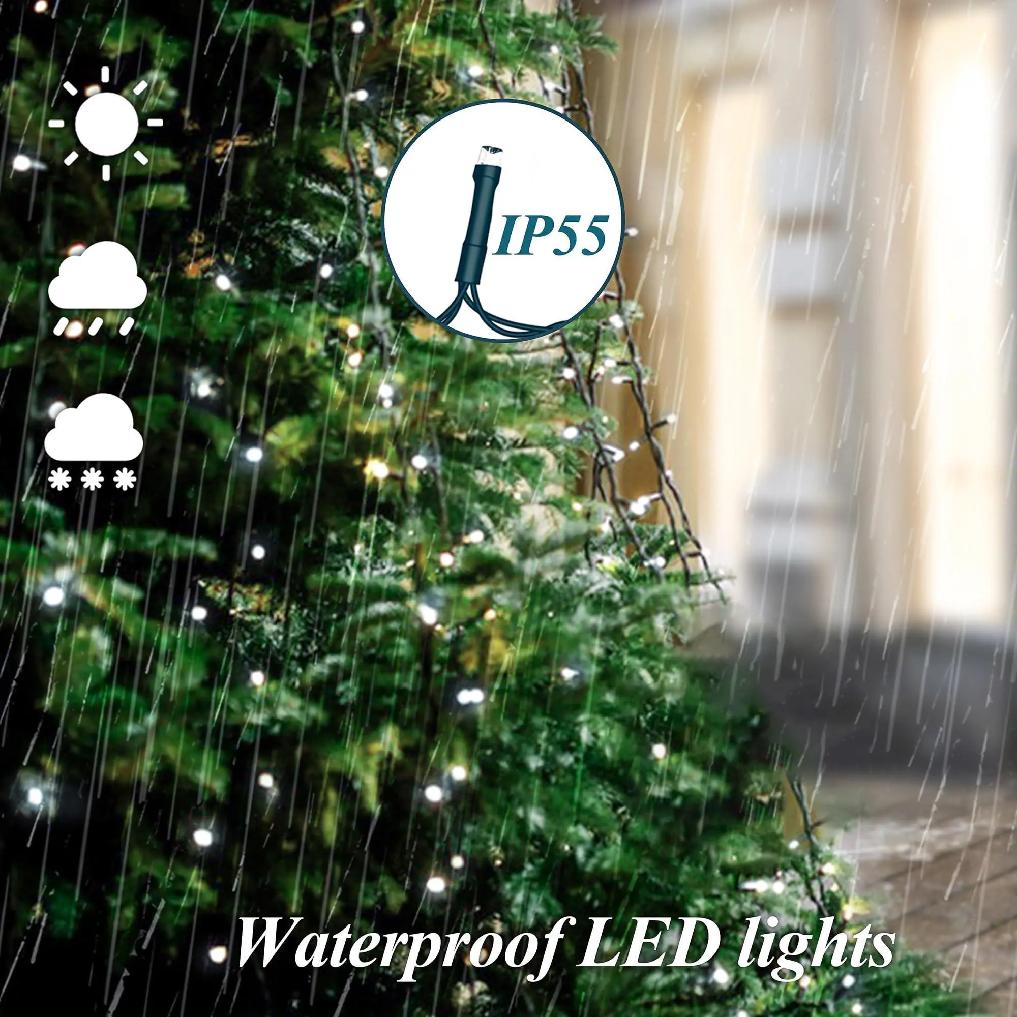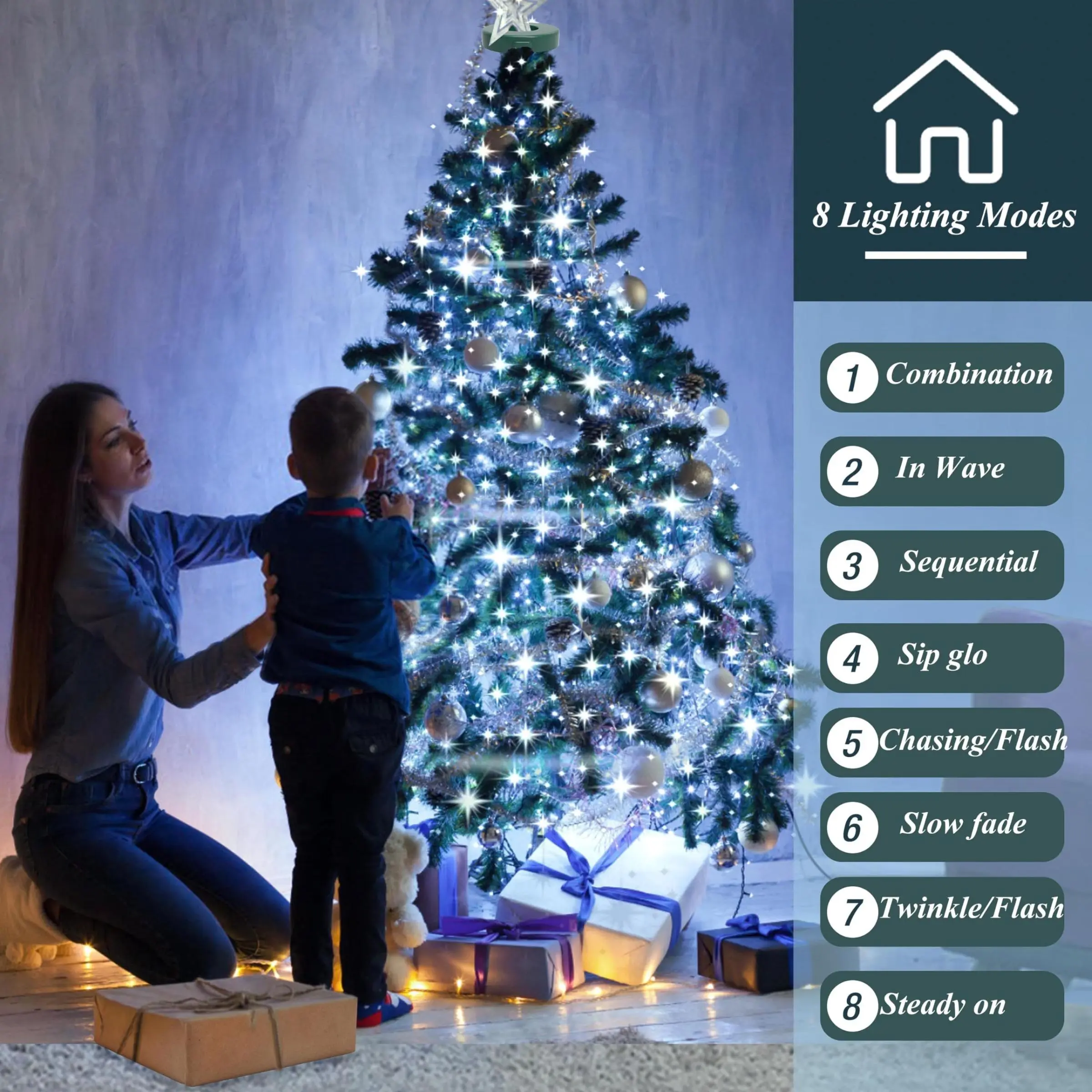 Christmas Tree Lights String, 400 LED Memory Function, 8 Modes, Remote Control, Timer, Holiday Decoration, 6.6ft X 16 Strands