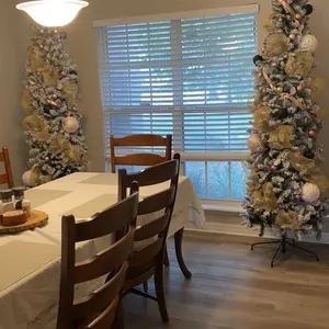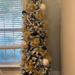 This is a gorgeous tree. Super easy to set up and the easiest tree Iāve ever fluffed. It was still a little messy but all flocked trees are. It has such a pretty shape and is so full even as a skinny tree. I would highly recommend!