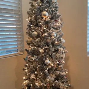 Love my Christmas tree! Itās 7.5 ft skinny but not too skinny, prelit and frosted perfectly with snow. 10/10 recommendšš¼