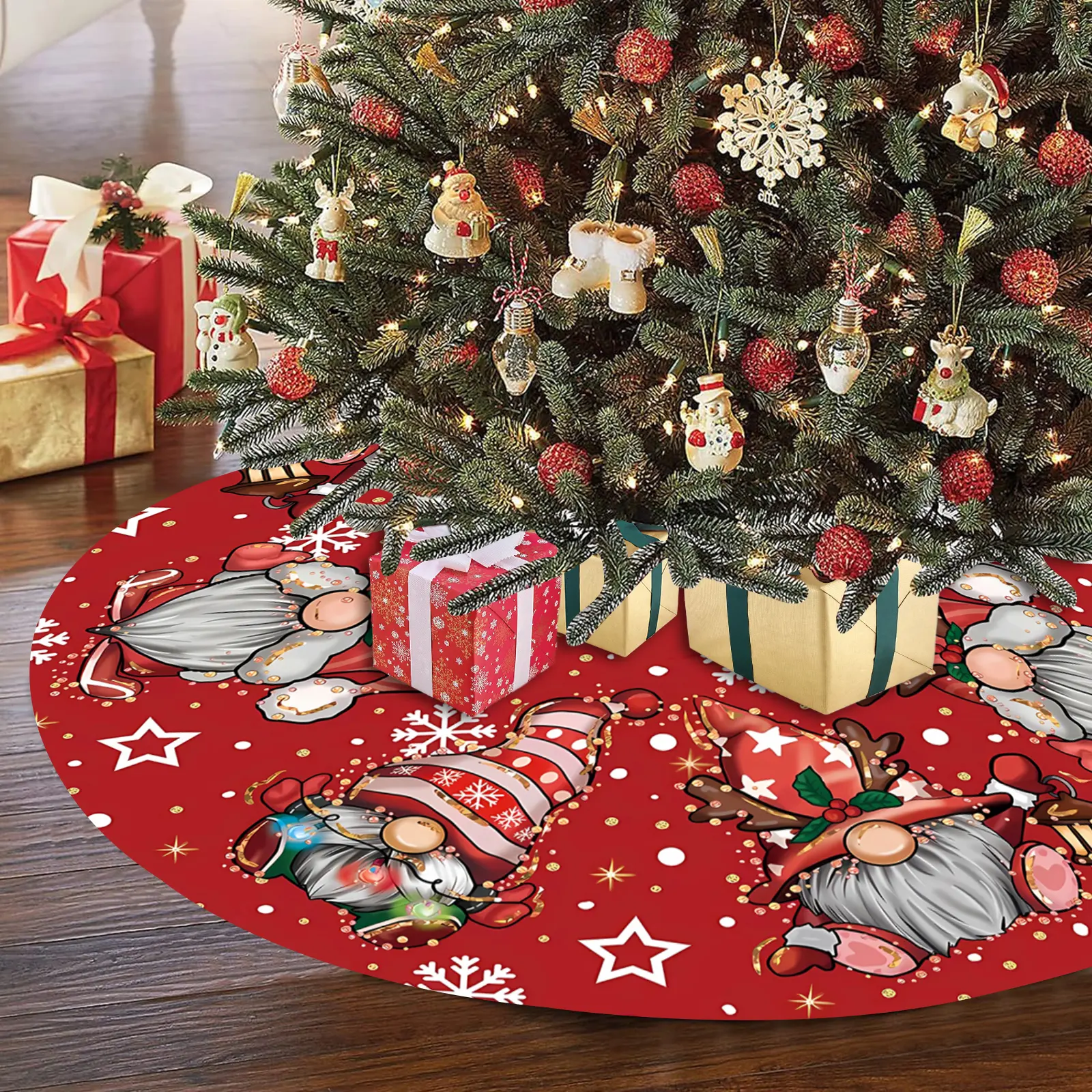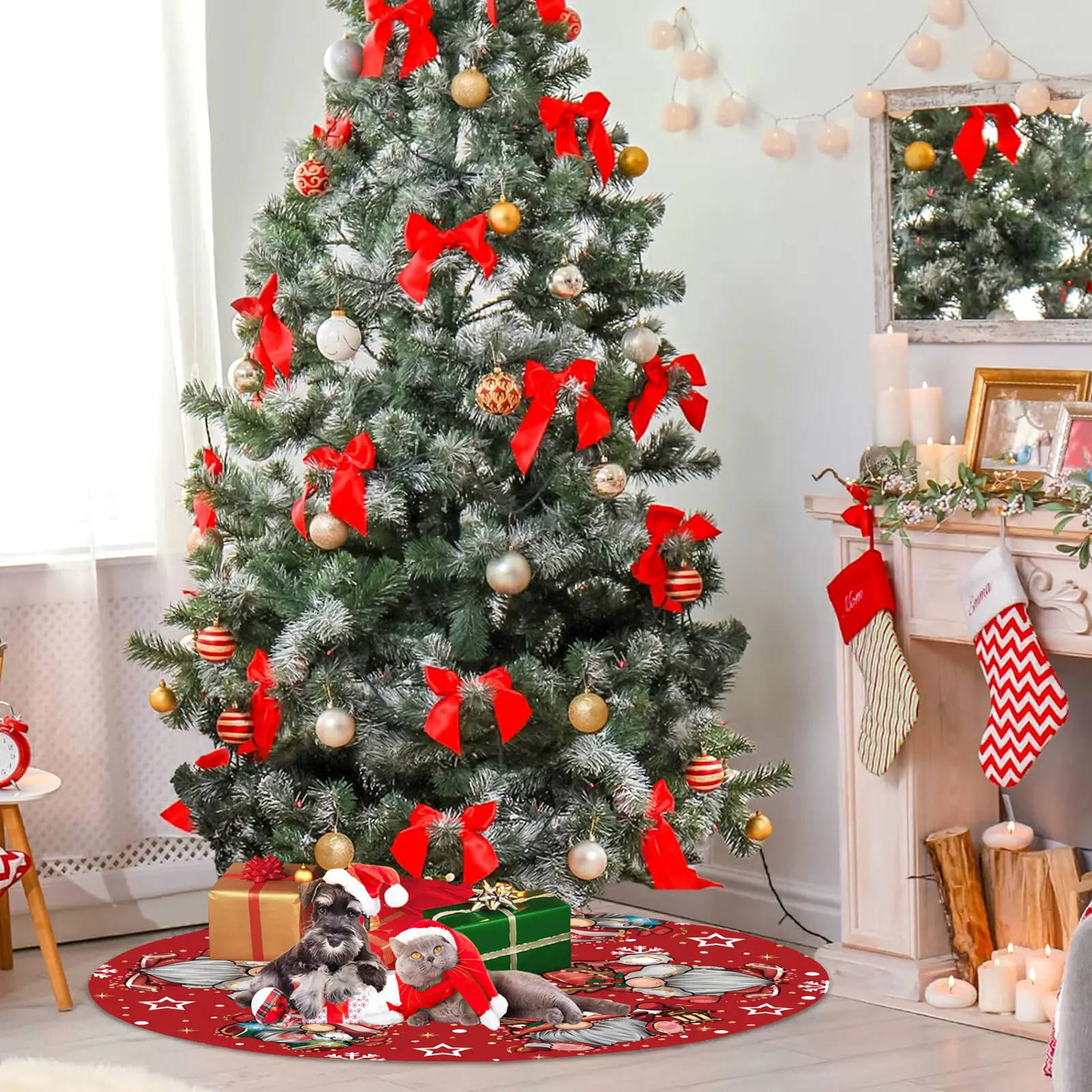 ·FASHIONABLE TREE MAT: Designed with stylish colors and patterns to match any Christmas tree decoration, making your home more lovely and sweet.