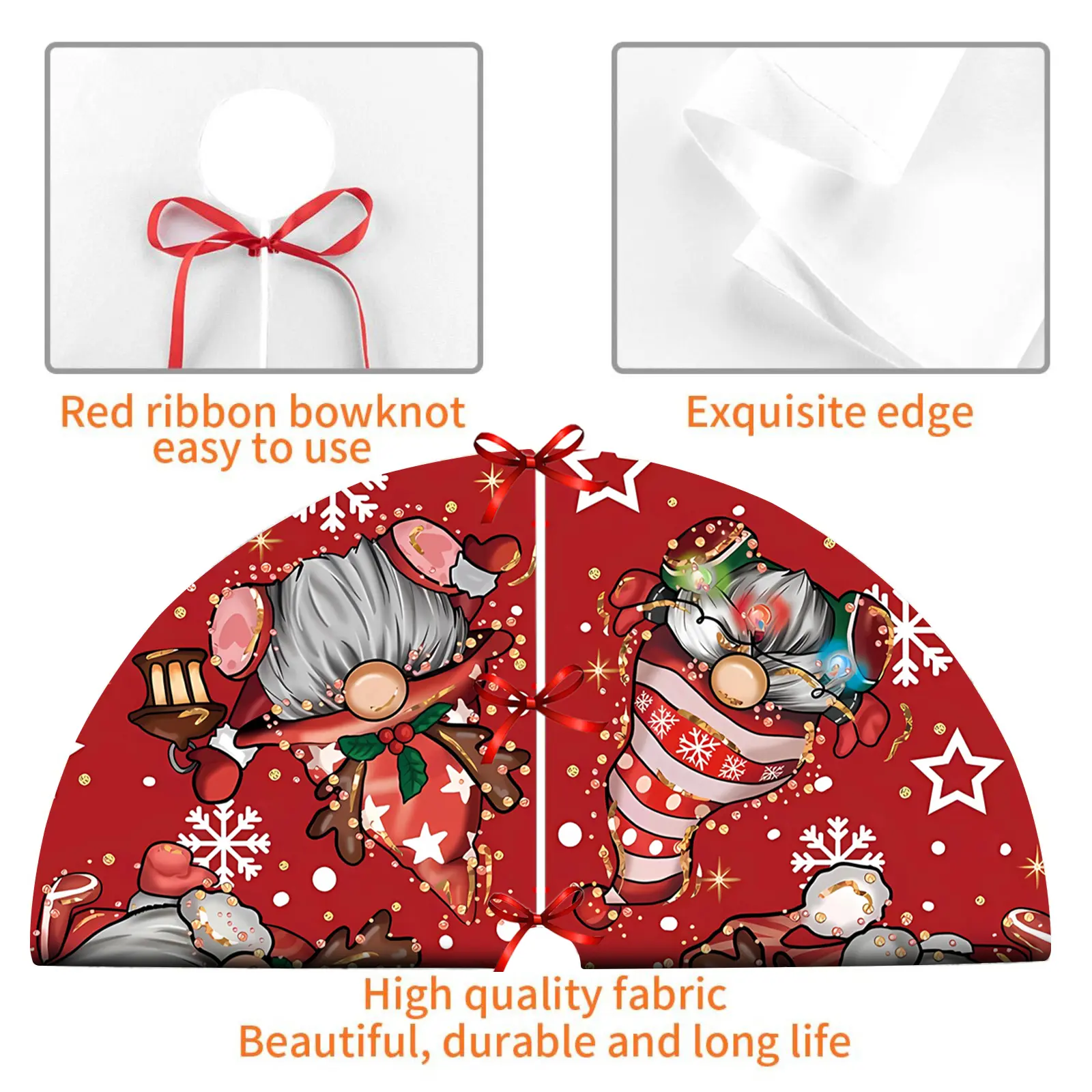 ·EASY TO ASSEMBLE AND STORE: 2 ties to secure christmas tree skirt around and in place underneath the christmas tree. Christmas tree skirt has long-lasting durability and can be reused. After the holiday season, you can fold them up for easy storage.