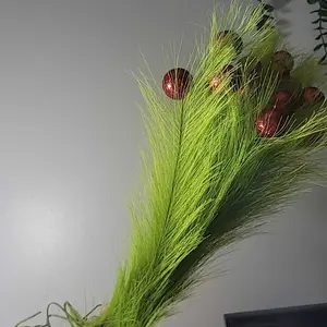 Christmas Clearance Sale Christmas Ornaments Green Furry Picks Fluffy Cuttable Christmas Tree Topper Set Xmas Tree Branch, Faux Pampas Grass Bendable Picks, Curly Artificial Stems with Berry Red Ball Wreath Vase Filler Holiday Home Christmas Decor