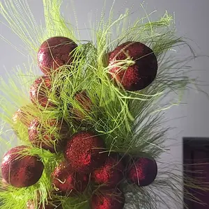 Whimsical fuzzy green stems decor with red ball ✨ Versatile vase decor that brings a playful holiday spirit. Perfect for fuzzy-themed Christmas, adding warmth and fun to any space! #christmasornaments #whimsical #christmasdecor #vase #TikTokShopBlackFriday