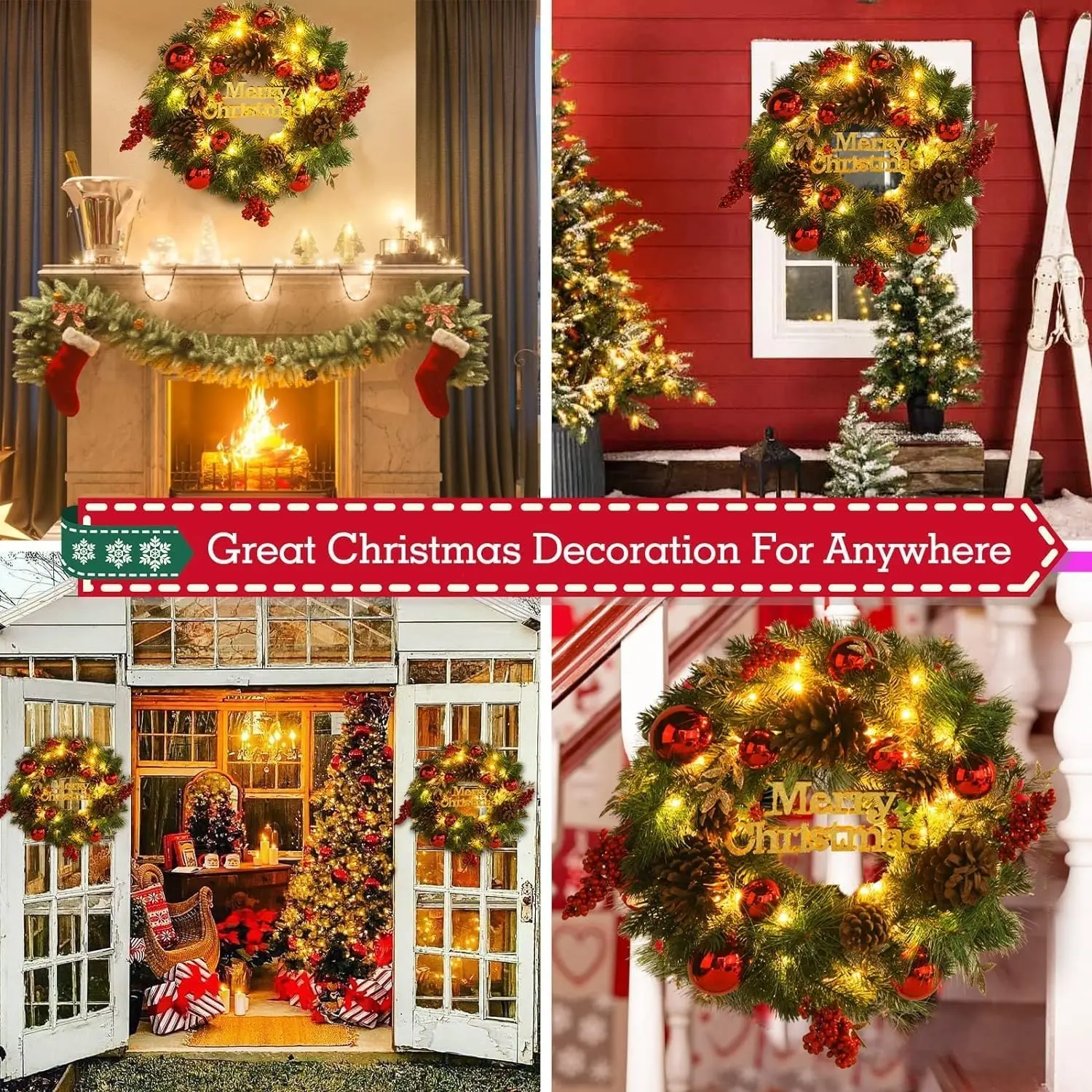 Indoor and Outdoor: Use this wreath to spread holiday cheer. It's perfect for your front door, living room, windows, shelves, or gardens, serving as a warm symbol of the season.