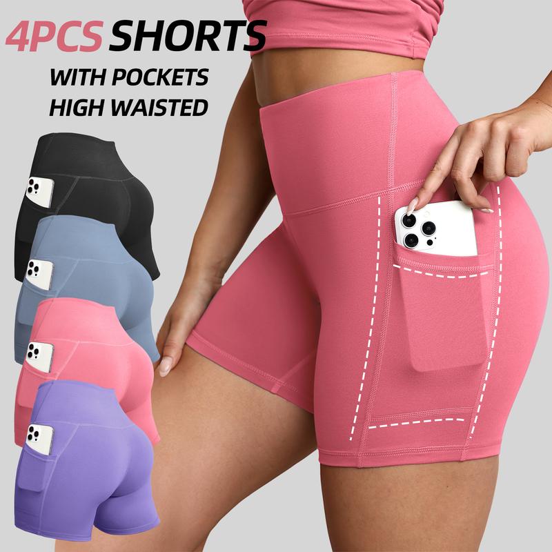 4-Pack Solid Shorts WITH POCKETS 🏃‍♀️Perfect for gym, jogs & yoga flowsStash your earbuds/protein bar—no extra bag neededBreathable fabric keeps you coolHit the link to level up your workout fits!#GymShorts #ActiveWear #tiktokshopfinds