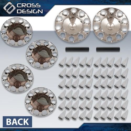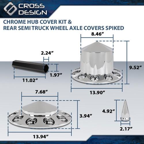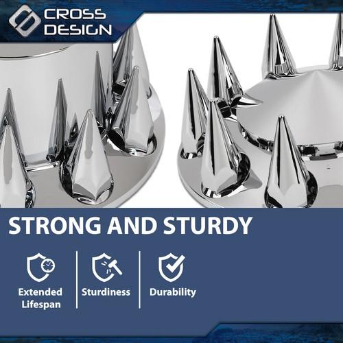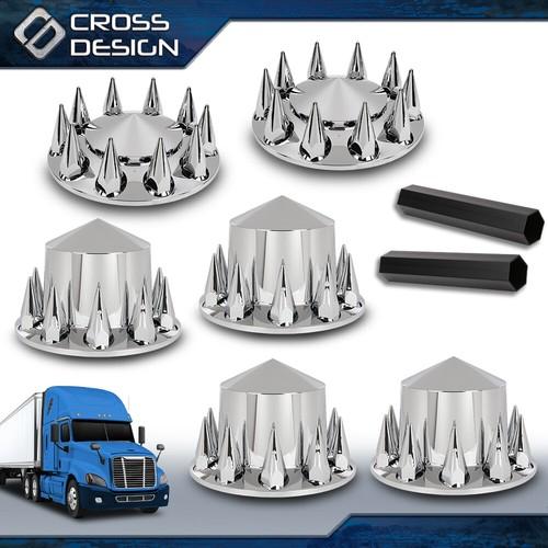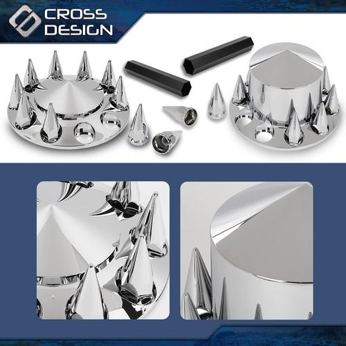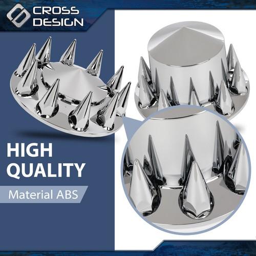 5. CROSSDESIGN Fits Chrome Hub Cover Kit 33mm Front & Rear Semi Truck Wheel Axle Covers Spiked