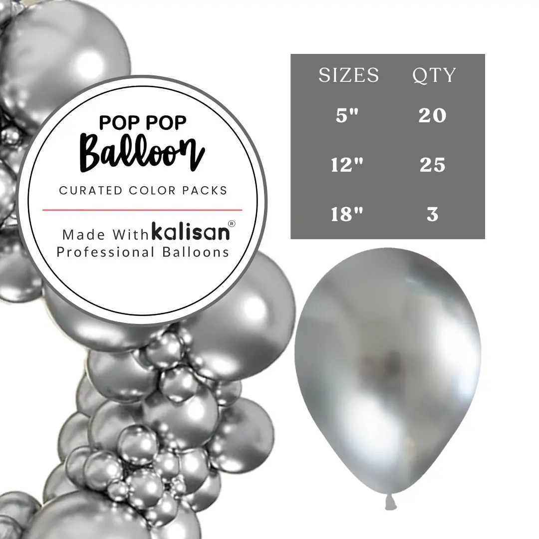 The Chrome Silver Balloon Multi Pack is created with Kalisan high-quality professional balloons. This collection is designed to meet the needs of professionals in balloon art. The pack includes various sizes of Chrome Silver, perfect for creating organic balloon designs. Ideal for events and celebrations, it offers versatility with a high quality balloon.