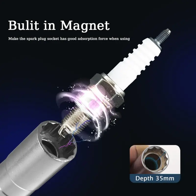 Ring Design:Built-in ring makes the spark plug socket has good adsorption force when using, so that the spark plug is firmly fixed in the socket, which can effectively avoid falling off when pulling out and minimize .