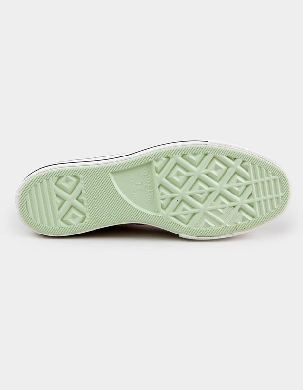 Converse Chuck Taylor All Start Lift Gingham High Top Platform Shoes. These Lifts get dressed in timeless gingham, so you can stay in leisure mode—no matter what your calendar says. Durable canvas upper for that classic Chucks look and feel. Ortho. Lite cushioning helps provide optimal underfoot comfort. Pale green outsoles add a pop of color. Standard and embroidered laces to mix, match, and style. Platform height: 1.49in. Imported.