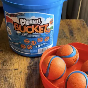 Enjoy endless games of fetch with a Chuckit!® Bucket! Made specifically for fetch-loving canines, this bucket comes with eight tough and durable medium-sized Chuckit! Ultra Balls® and features drainage holes to make cleaning and sanitizing balls a breeze. Simply place dirty toys inside, fill with water, give the bucket a swoosh, and you've got clean toys ready for fetch. The easy carry handle makes transport easy, so you can Make Fetch Happen® wherever your sense of adventure takes you. Grab your Chuckit! Ball Launcher (sold separately) and your Chuckit! Bucket and take your game of fetch to the next level!