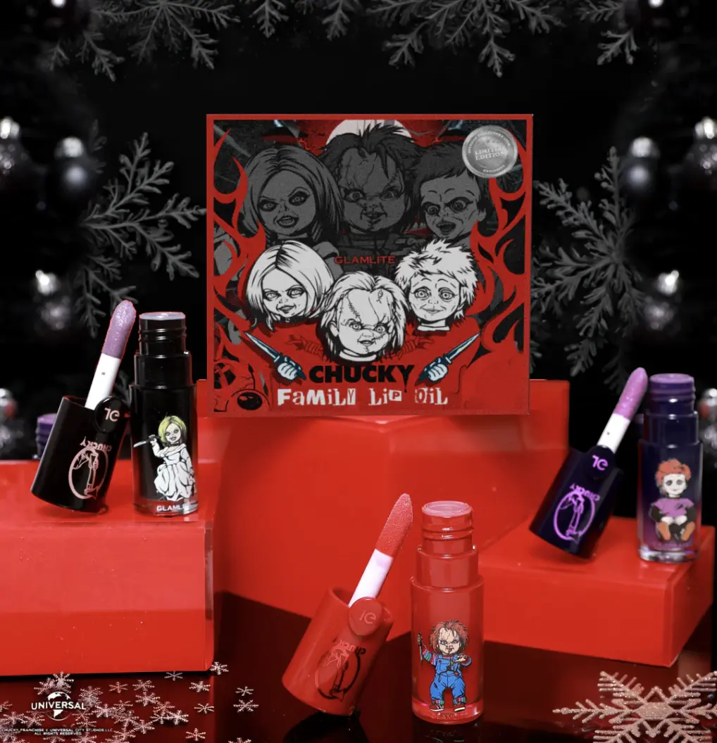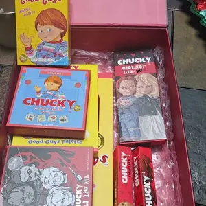 | Ingredients | Ingredients(Wanna Play?/Good Guys/He's Back!): Talc,Mica. Polyethylene Terephthalate,Ethylhexy| Palmitate,Calcium Sodium Borosilicate,Synthetic Fluorphlogopite. Silica,Caprylic/Capric Triglyceride,Dimethicone,Bis-Diglycery1 Polyacyladipate-2. Tridecyl Trimellitate,Magnesium Stearate,Triethoxycaprylylsilane,Polyisobutene,Phenoxyethanol,Dimethicone/Vinyl Dimethicone Crosspolymer,Capryty1 Glycol,Tocophery1 Acetate,1,2-Hexanediol. Ethylhexylglycerin,Tin Oxide,Acrylates Copolymer,Aluminum Powder. May Contain(+/-): CI 77266(D&C Black No.2),CI 77891 (Titanium Dioxide),CI 77499 (Iron Oxide Black),CI 77492(Iron Oxide Yellow),Cl 77491(Iron Oxide Red). Pressed Pigments Ingredients(It's Time to Play/Chucky&Tiff Forever/Scarier than Ever/lssue: 666/1 Like to Be Hugged/Play Pals/It's Showtime/Til Death Do Us Part/Your Pal since98'/Let's Be Friends!Charles Lee Ray/Free Hugs): Talc. Mica,Synthetic Fluorphlogopite,Calcium Sodium Borosilicate. Ethylhexyl Palmitate,Silica,Polyisobutene. Bis-Diglycery| Polyacyladipate-2,Tridecyl Trimellitate,Polyethylene Terephthalate,Dimethicone/ Vinyl Dimethicone Crosspolymer,Capry/ty/ Giycol,2-Hexanediol,Aluminum Starch Octenylsuccinate,Polyethylene,Ethylhexylglycerin,Microcrystalline Wax,Paraffin,Trimethylsiloxysilicate,Aluminum Powder. May Contain(+/-): CI 77499(Iron Oxide Black),CI 77266(D&C Black No.2),Cl 77491 (Iron Oxide Red),CI 45410(D&C Red No.27 Al Lake),CI 15850(D&C Red No.7 Ca Lake),CI 77492 (Iron Oxide Yellow),Cl 77007(Ultramarines),Cl 15850(D&C Red No.6),CI 42090(FD&C Blue No.1 AI Lake),CI 77510(Ferric Ammonium Ferrocyanide),Cl 15850(D&C Red No.6 Ba Lake). |