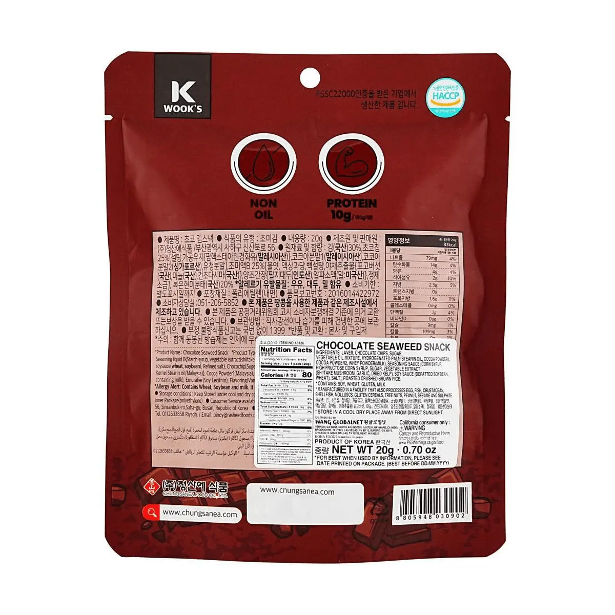 CHUNGSANEA K Wook's Korean Crispy Rice Seaweed Snacks - Chocolate Flavor, 20g - Savory & Sweet Snack for Kids & Adults