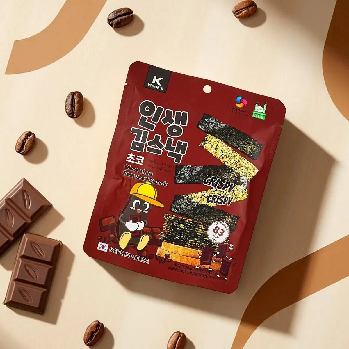 5. CHUNGSANEA K Wook's Korean Crispy Rice Seaweed Snacks - Chocolate Flavor, 20g - Savory & Sweet Snack for Kids & Adults