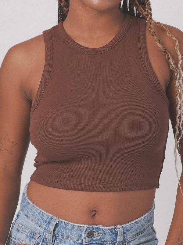 An essential High Neck top with our signature built-in padding. No folding, rolling, or flimsy pads! Our padding is designed to keep its shape for maximum support and coverage. This crop length style is designed with a soft ribbed fabric and chunky binding, so you can go braless in confidence.