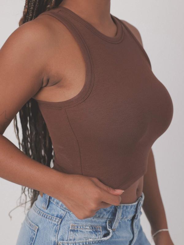 ·Details: High neckline, crop length, ribbed fabric, built-in removable padding