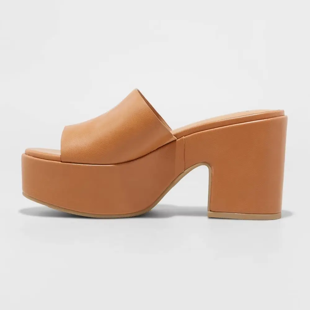 Keep your feet covered in fashion-forward style with these Ricky Platform Heels from A New Day. Set on a 3.5-inch wedge heel for an elevated look, these platform heels boast memory foam insoles to help keep you walking in comfort. The simple yet stylish platform heels feature an open toe and back design, making them super easy to slip on and off, whether you’re heading to the office or enjoying brunch with friends on the weekend.