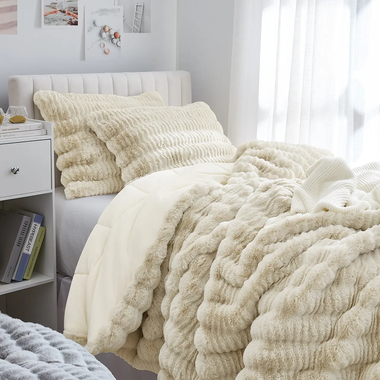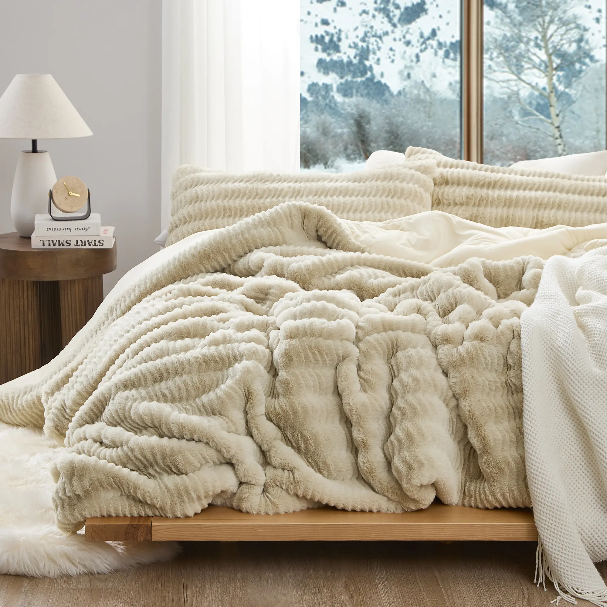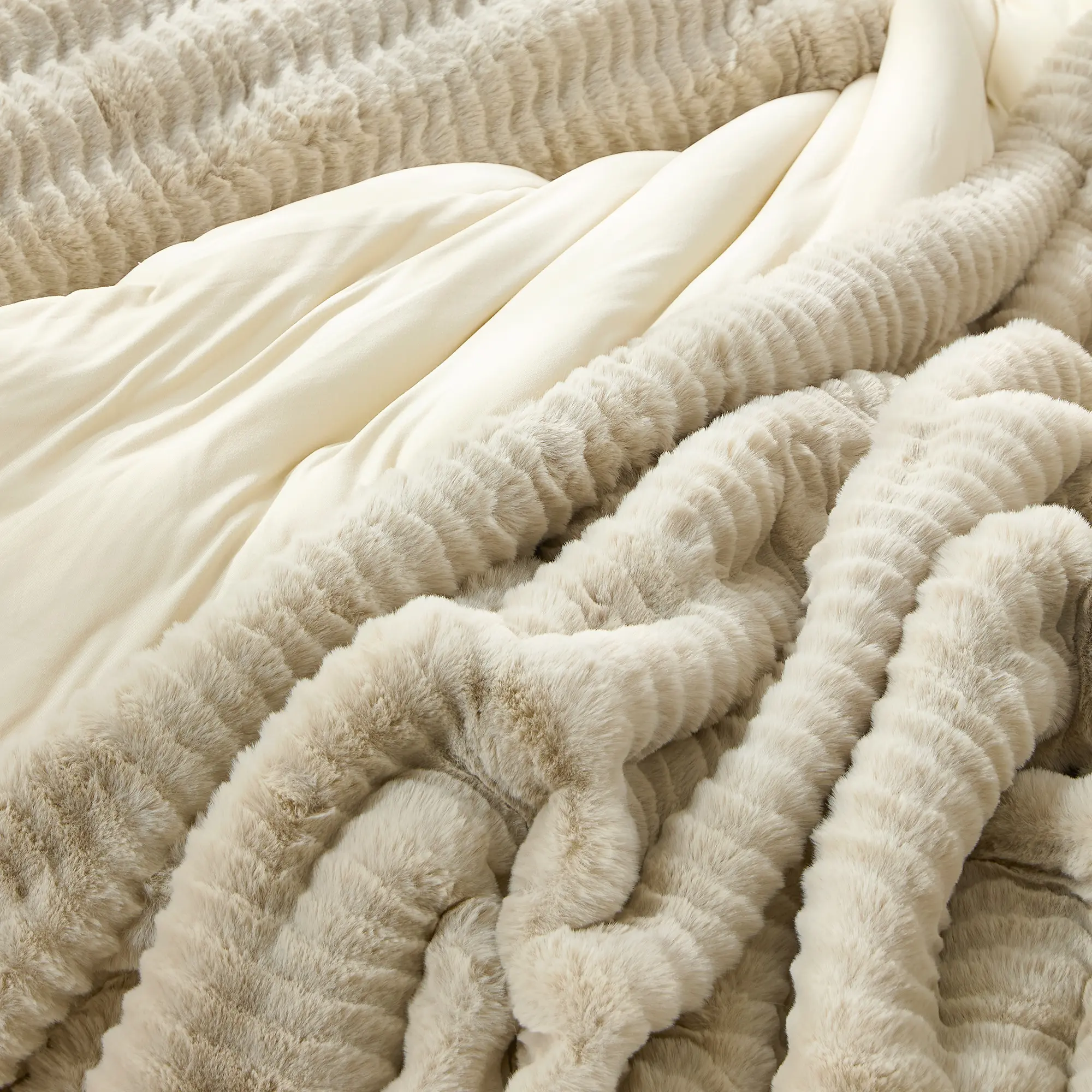 Inspired by soft, overly plump bunnies that make you want to hold and caress them against your skin… the pinnacle of being cozy! Our Chunky Bunny Peak of Cozy is as real as it gets without being real (because that would be sad). 700 GSM of rabbit faux fur plush material reversing to our silky smooth Bare Bottom material creates a cozy soft, snuggle up warmth that cannot be compared. It is a plush slice of cozy pure goodness! A "please don't disturb me because I'm too incredibly comfortable" or a "you better believe I'm going to be late for work" type of cozy. If you are looking for a comforter that can do all that, then you've found it with our Chunky Bunny Peak of Cozy.