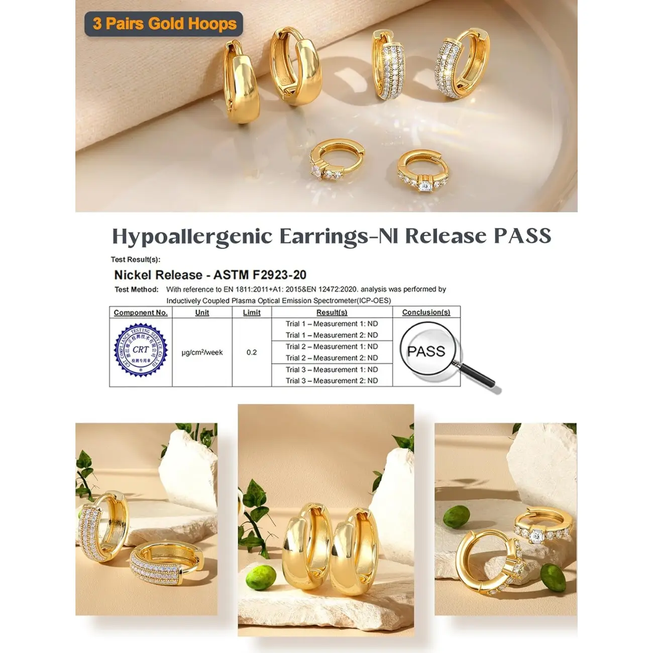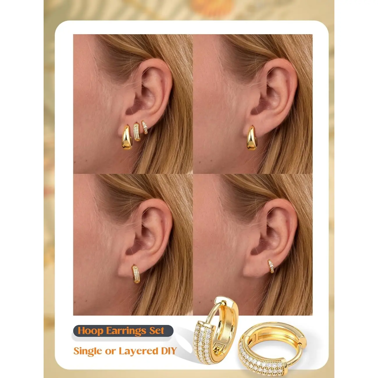 ·Gold Earrings for Women Trendy---3 Pairs Chunky gold earrings of different styles,classic chunky hoops,silver gold hoop earrings with pave,tiny small dainty hoop earrings with square CZ.Elegant and fashion 14k gold hoop earrings,suitable for any occasions.Great value gold jewelry for women,an essential series for woman's jewelry collection