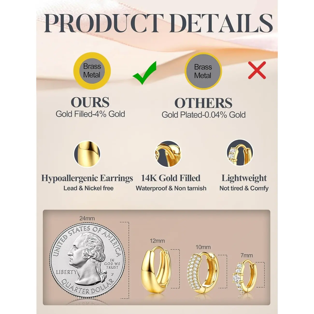 ·Lightweight & Hypoallergenic Earrings---The gold earring set is made of selected material,lead & nickel free,hypoallergenic earrings for women,suitable for sensitive ears,won't cause any irritation or discomfort when worn for extended periods.Small gold hoops,durable and lightweight,all huggie earrings are under 0.1oz,comfortable wear alone or stacked to all day
