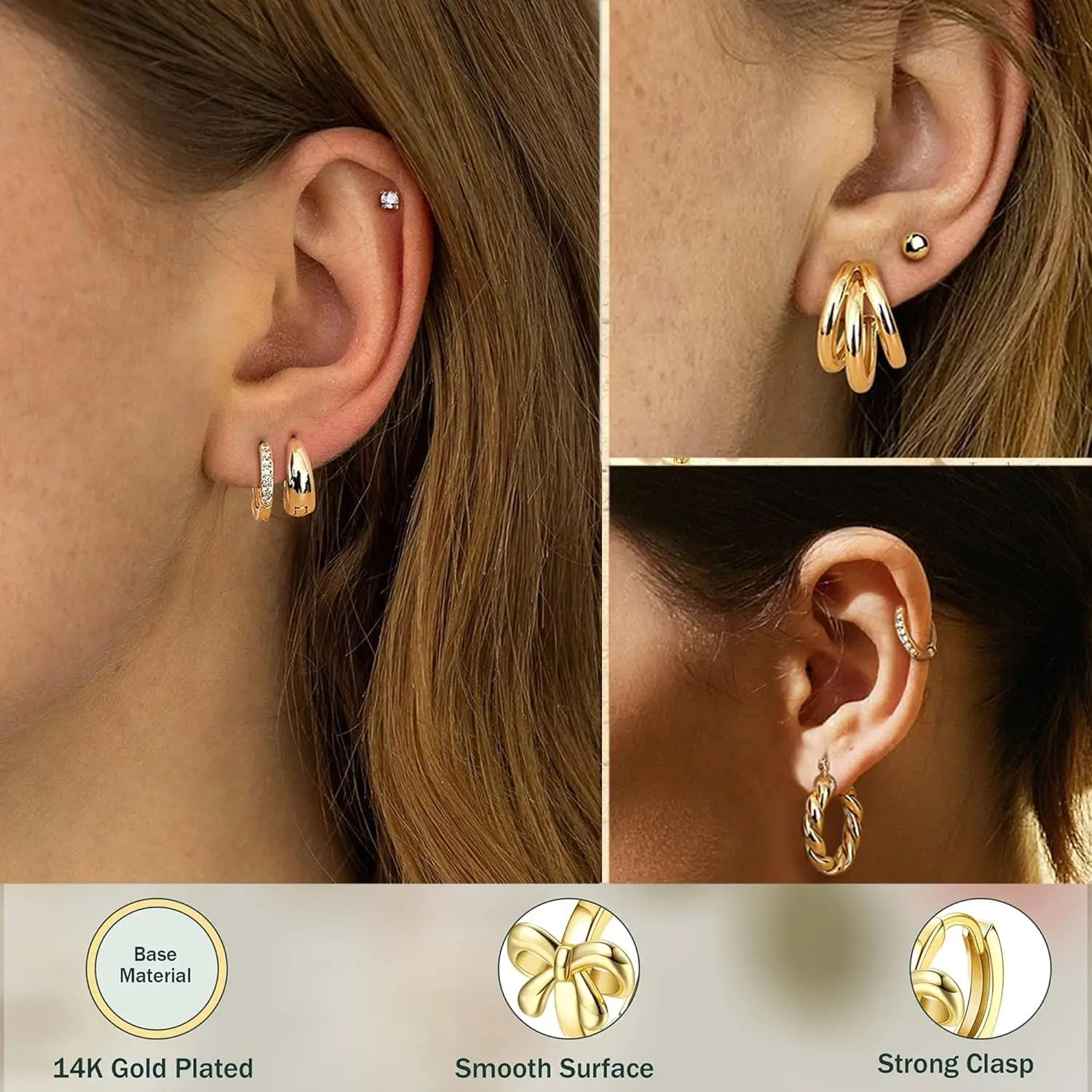 Crafted from 316L stainless steel and 14K gold plating, these earrings are hypoallergenic and long-lasting. They are safe for sensitive ears, ensuring comfort and shine.