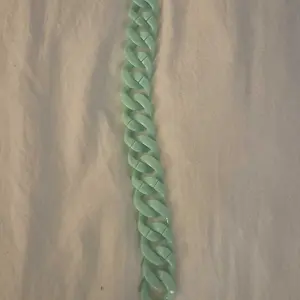 Material: This is a mint green plastic woven braid with 2 clasps at the ends to connect to whatever.