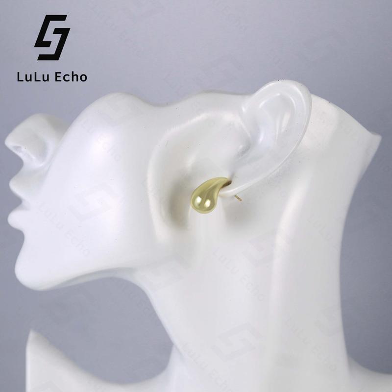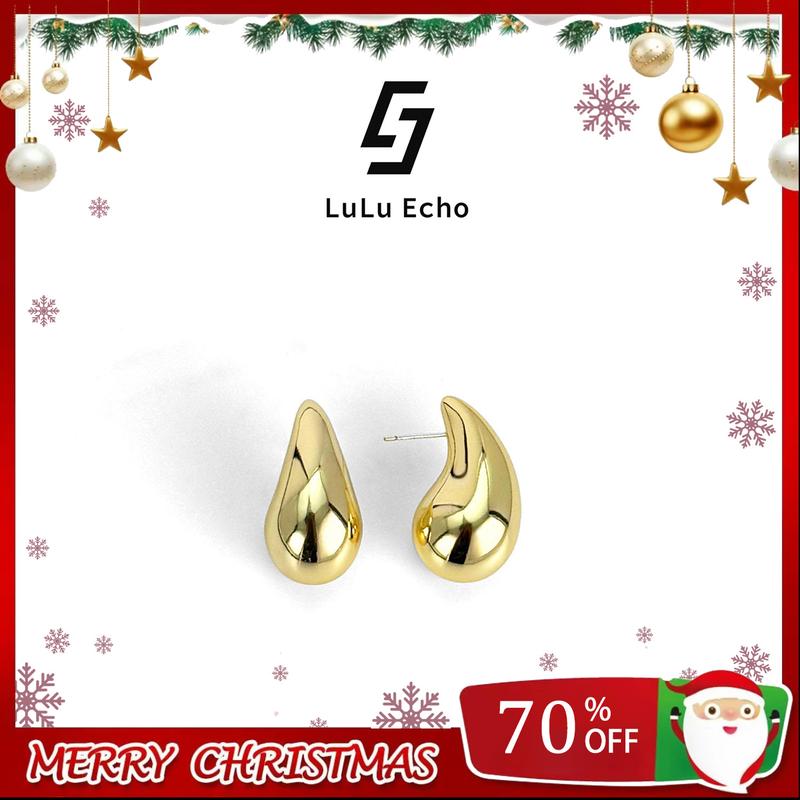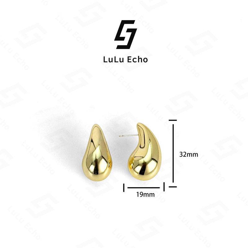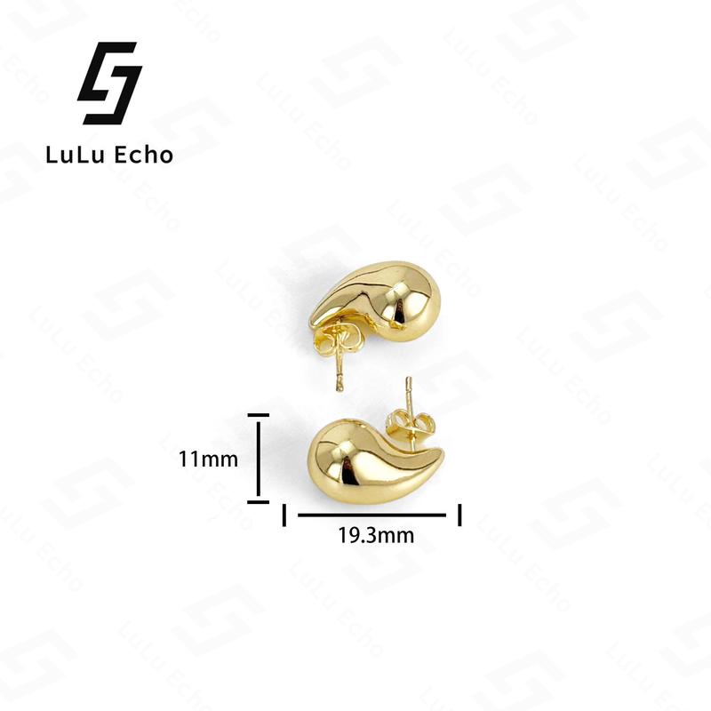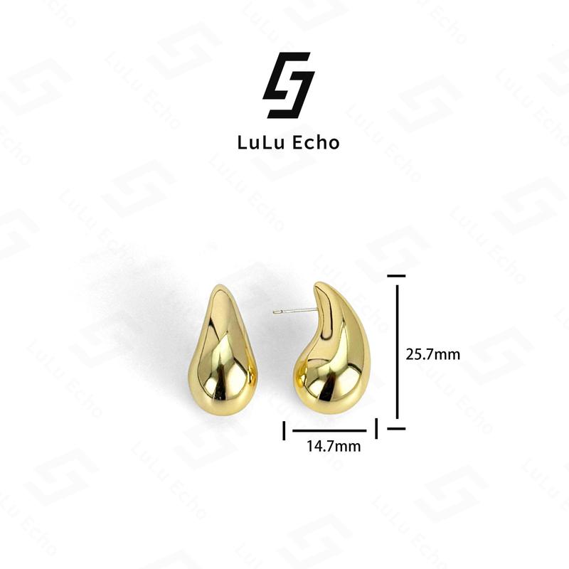 5. LuLuEcho No Faded Chunky 14k Gold Plated Hoop Earrings for Women, Top Quality Dupes Earrings Lightweight Waterdrop Hollow Open Hoops, Hypoallergenic Light Golden Earrings Fashion