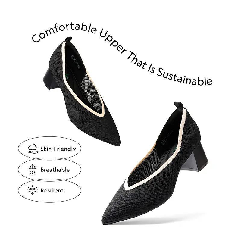 Knitted Upper: These heels are skin-friendly and breathable. Made from material that uses 3D Fly Weave TM technology and utilizes threads that are made from plastic bottles.
