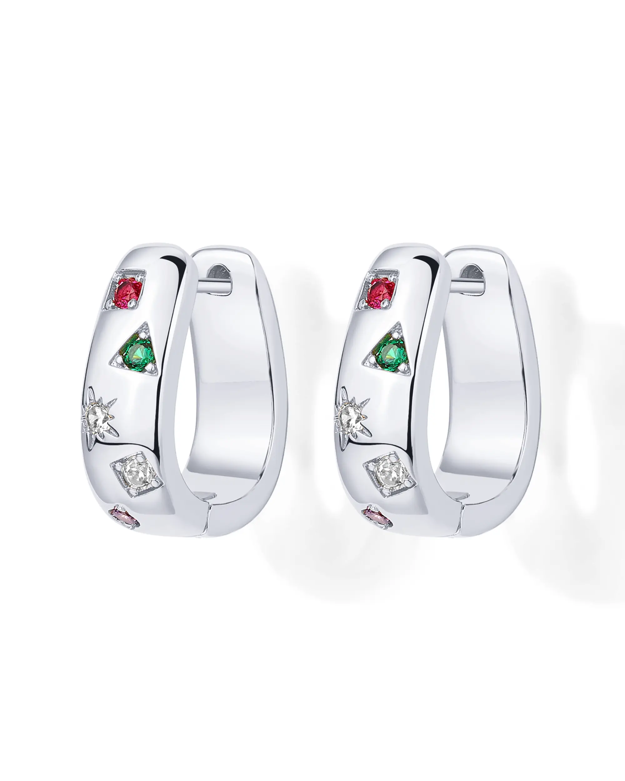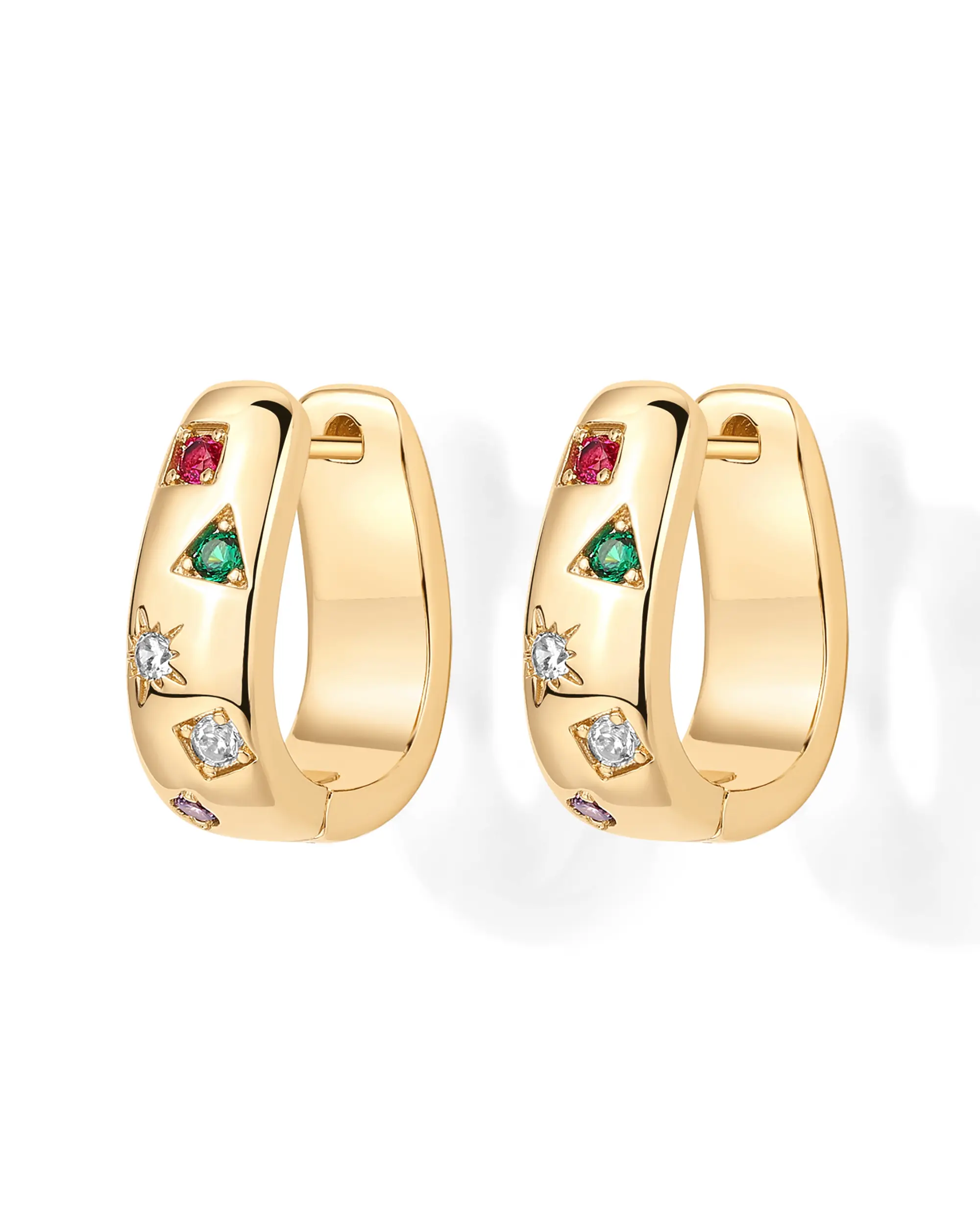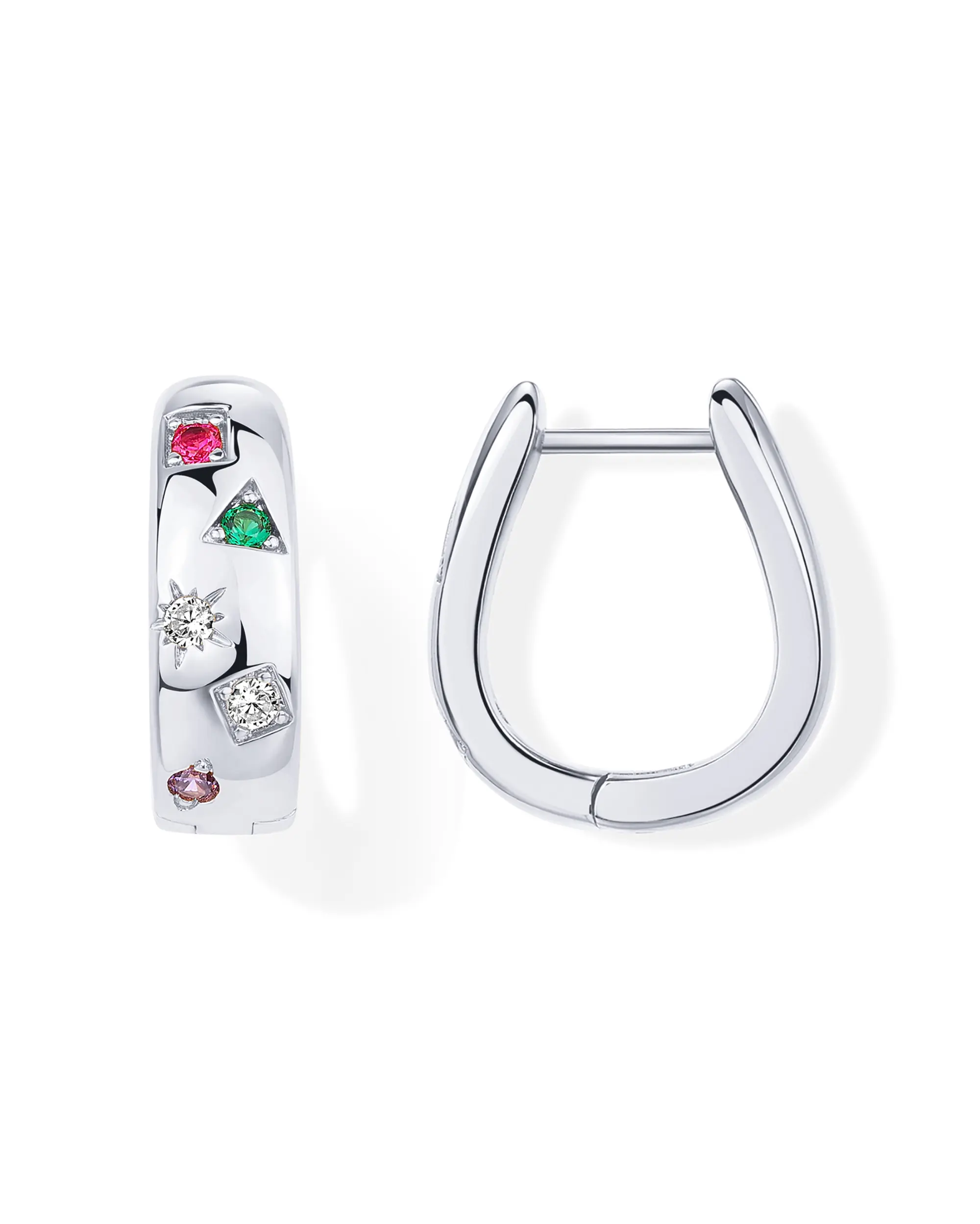 Beautiful gemstone, huggy hoops. You could even turn these around and wear them on the other side, and since it snaps close, you’ll have no problems, putting them on backwards. Love these.