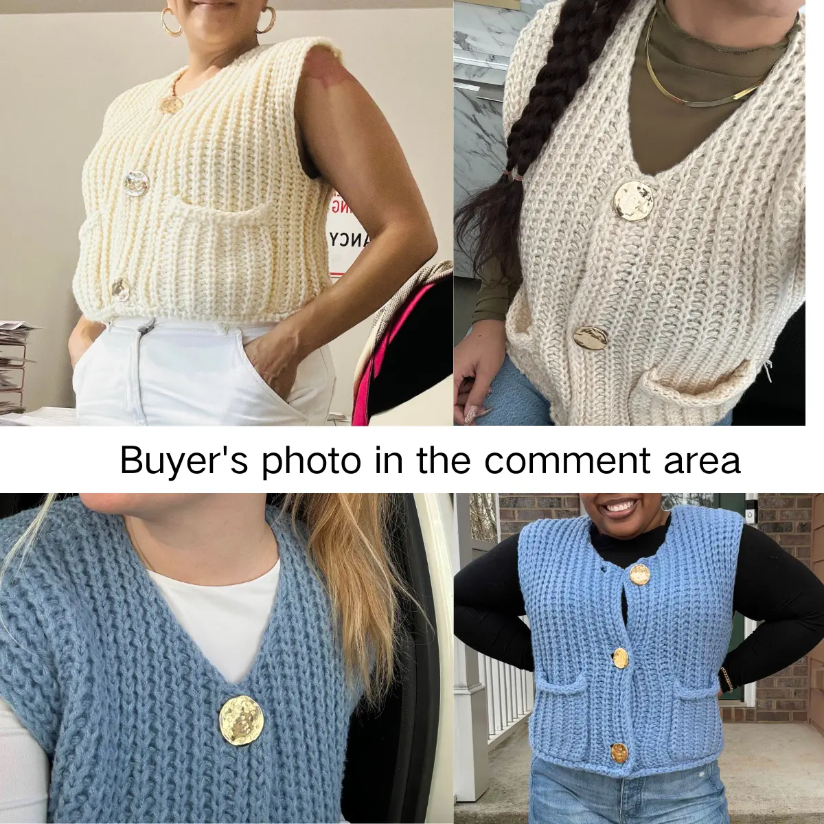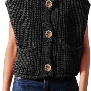 ·Features:This Knitted sweater vest for women has two side pockets, gold front buttons, solid color, and crewneck.
