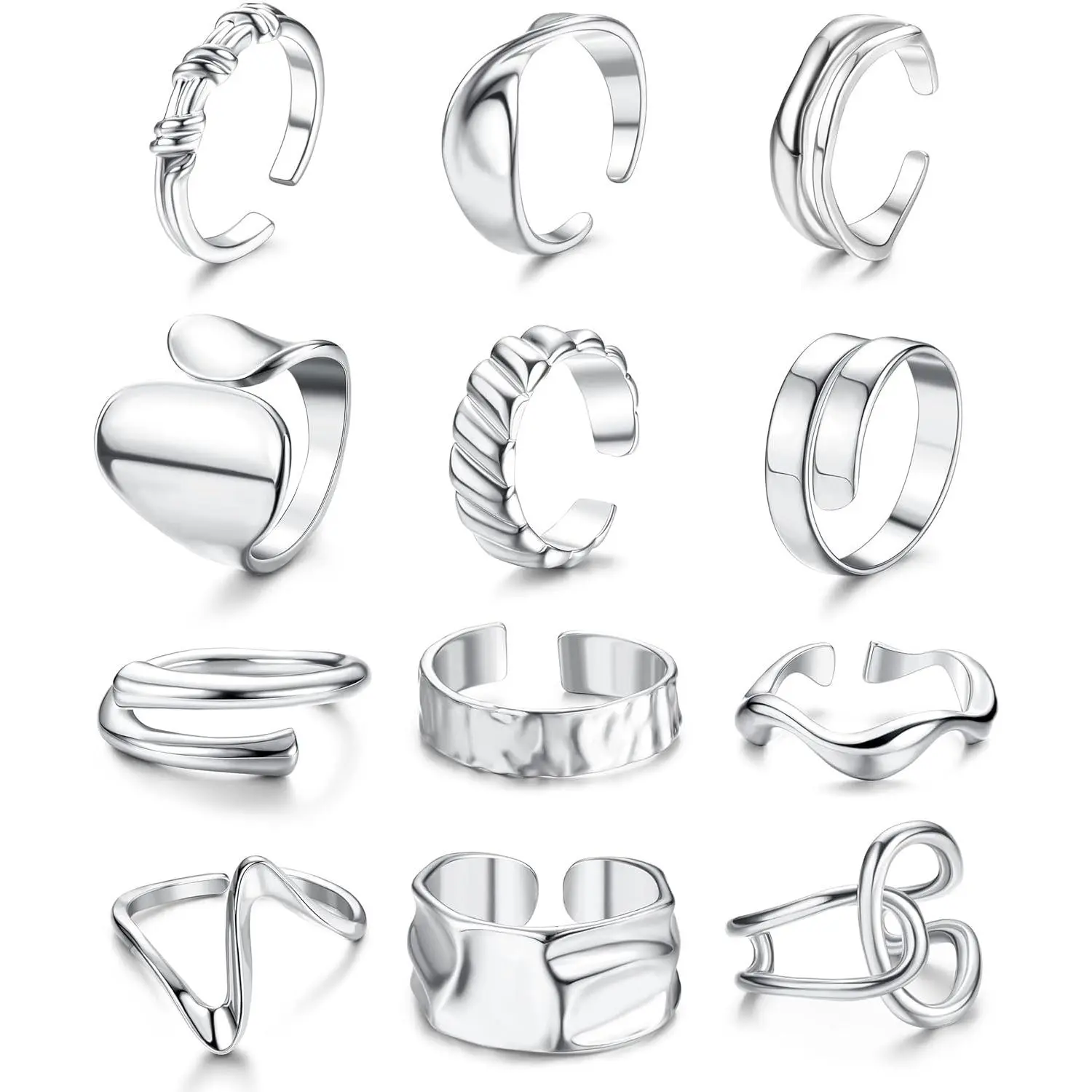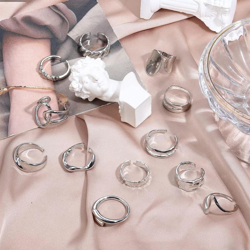 ·CHUNKY RINGS PACK: You Will Get 12 New Styles Of Thick Rings. They Can Be Worn Individually Or Stacked For Your Everyday Needs.