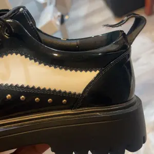 Plastic low quality shoe looks good but plastic as I was slipping them on the strap in the back pop also