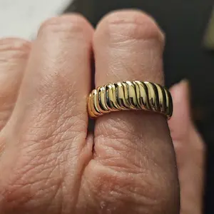 Step up your style game with this chunky gold-plated ring. It's all about giving a nod to the contemporary woman. This chunky 7mm band? It's like a bold, "look at me now" kind of piece that screams class.