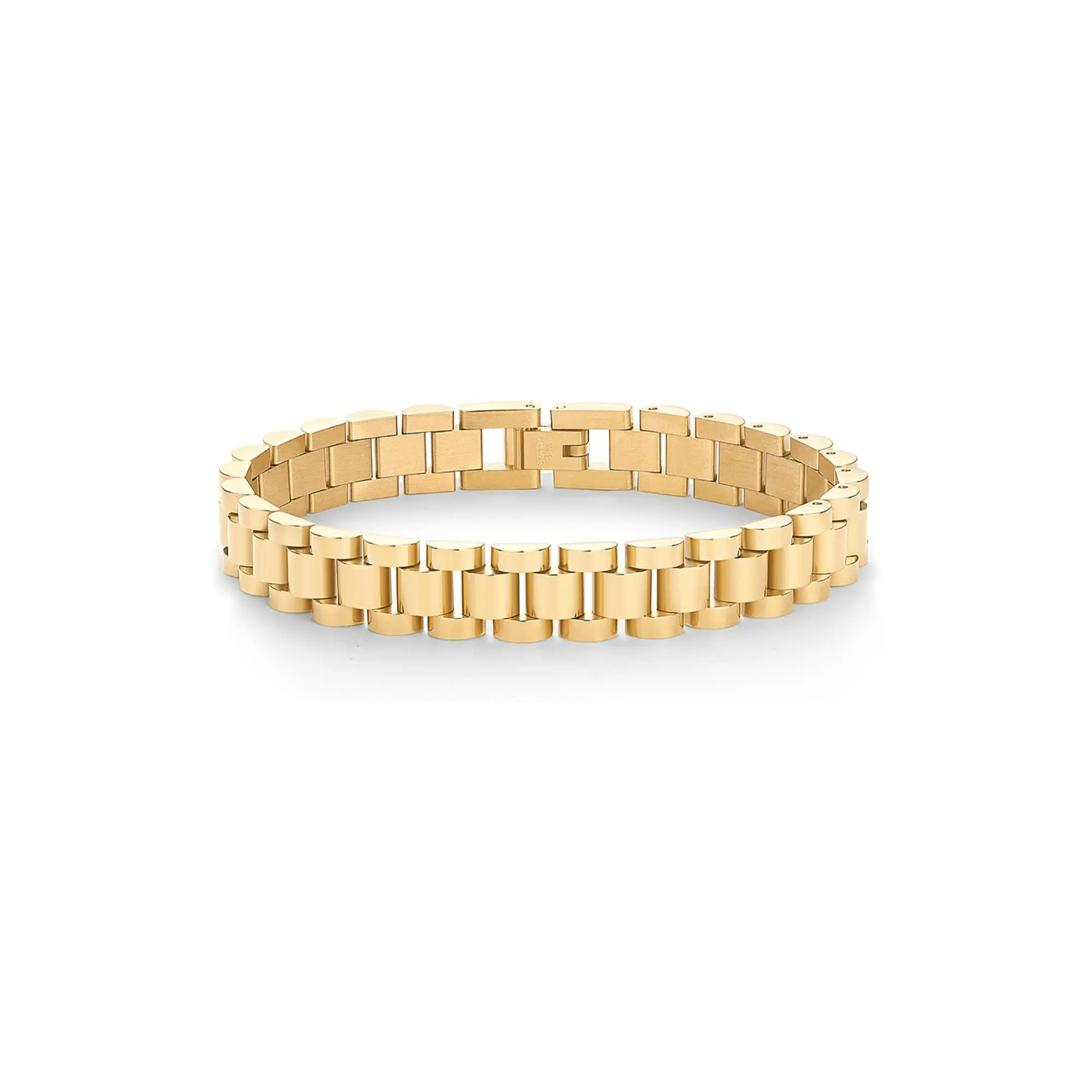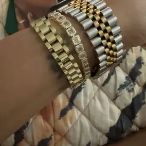 Love this bracelet, I couldn’t wait to get this and it just arrived today, so comfortable and sturdy love the clasp lock and the color beautiful!!💕👌🏻 and it’s kind of like a watch link if you want it smaller you can take links out.